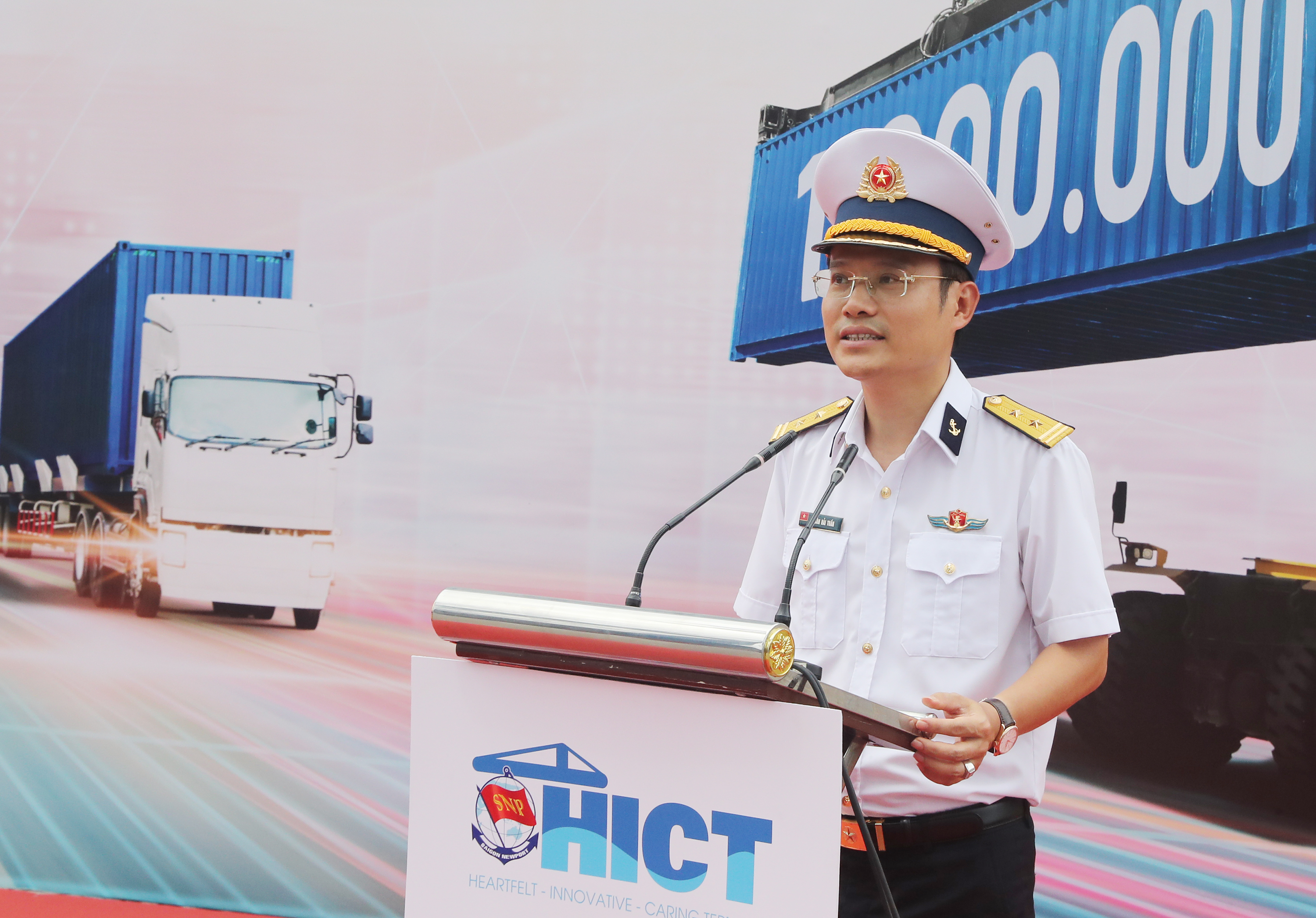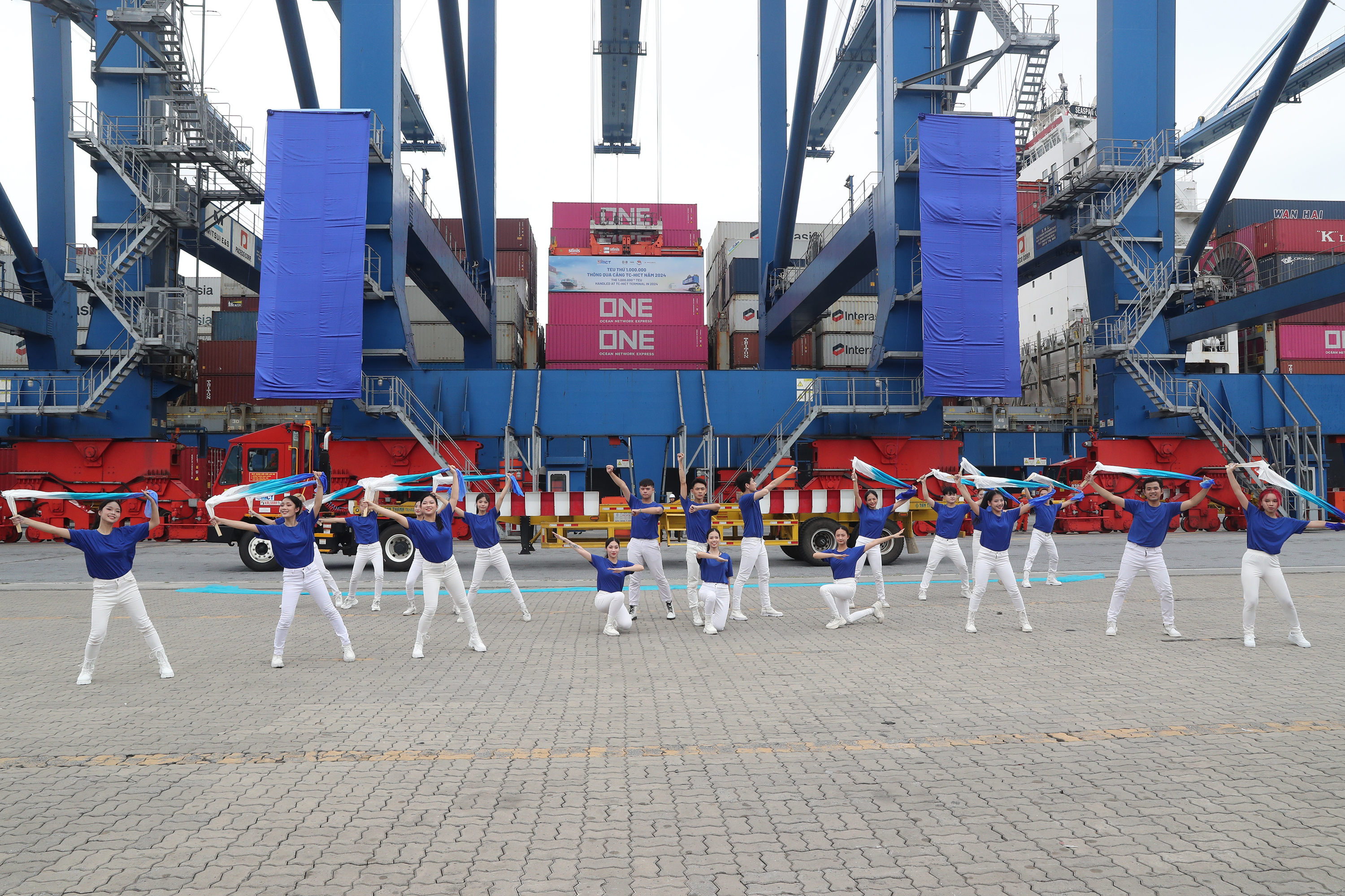 Ban lãnh đạo, cán bộ, nhân viên TC-HICT thực hiện nghi lễ đón TEU thứ 1 triệu