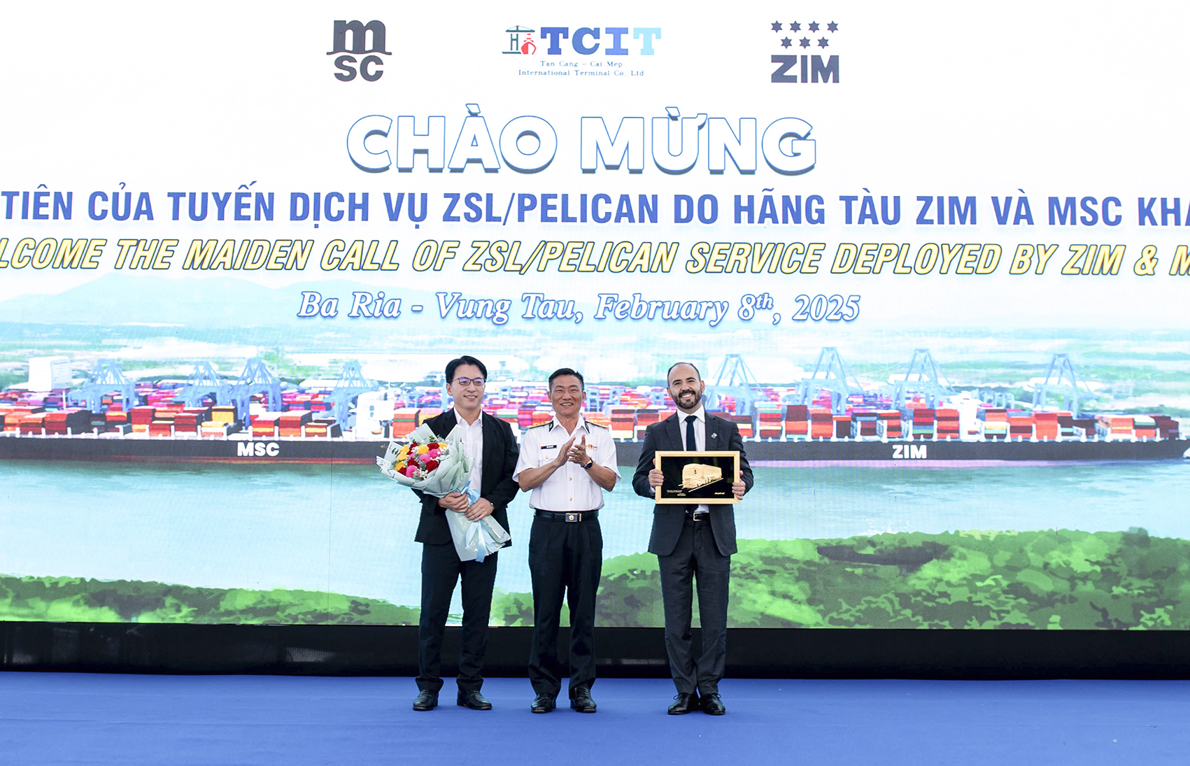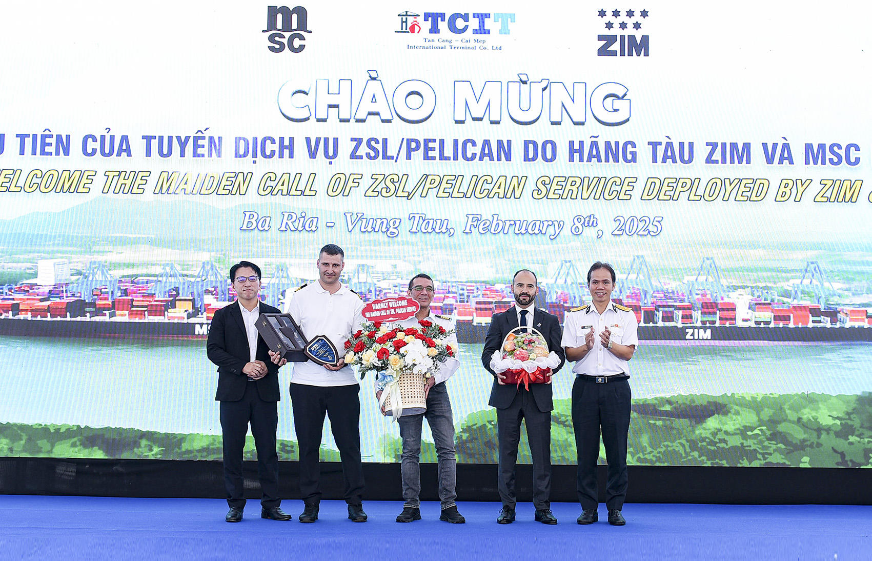 Tham dự buổi lễ có Đại tá Bùi Văn Quỳ, Phó Tổng giám đốc Tổng công ty Tân cảng Sài Gòn; ông Fernando De La Rosa, Tổng Giám đốc ZIM (Việt Nam); lãnh đạo Cảng vụ Hàng hải Vũng Tàu, Chi cục Hải quan Cái Mép, Trạm Biên phòng cửa khẩu cảng Cái Mép, cùng đại diện lãnh đạo Tổng công ty Tân cảng Sài Gòn (TCSG) và các đơn vị thành viên; thuyền trưởng và thủy thủ đoàn tàu NINGBO.
