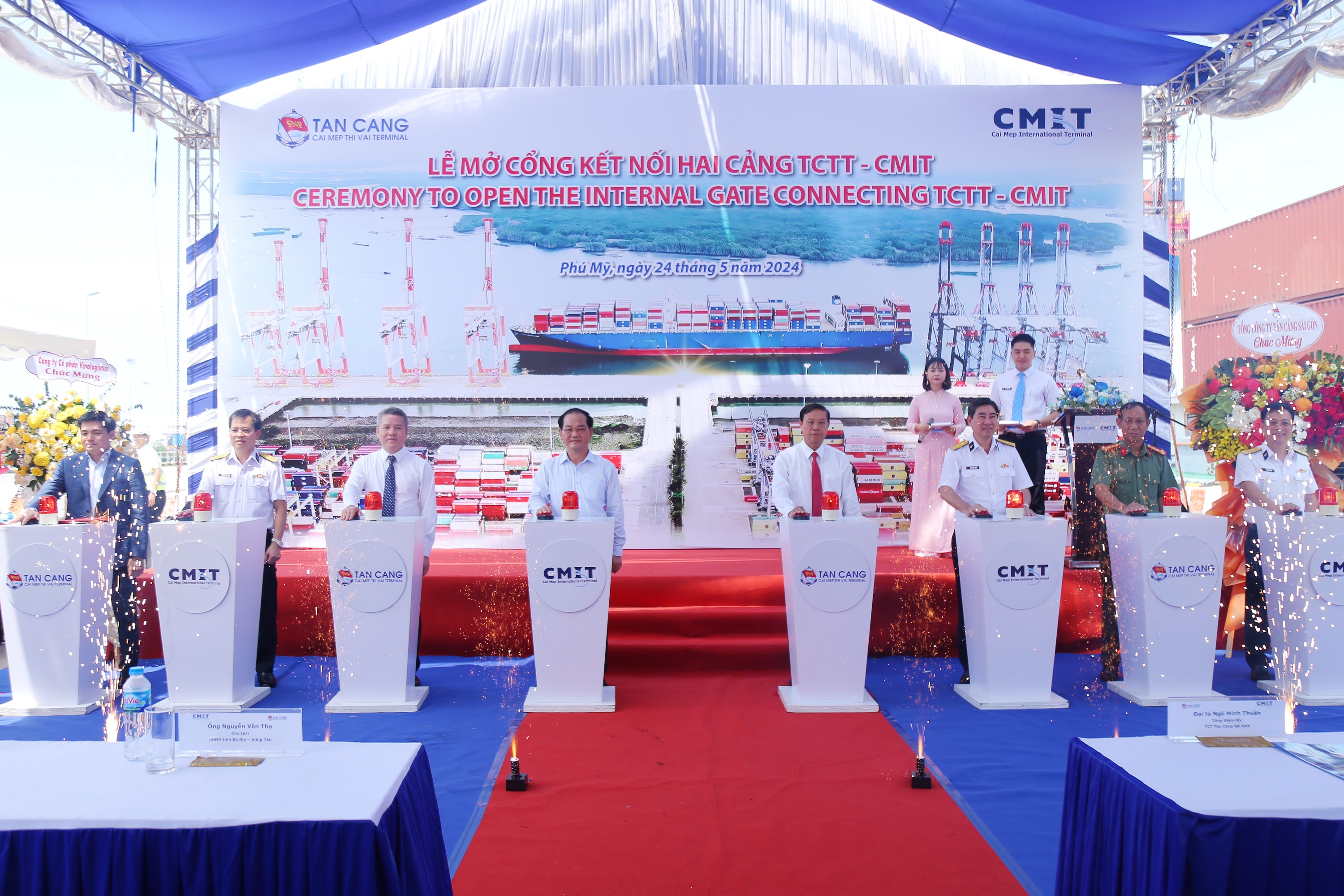 Sáng 24/5, tại thị xã Phú Mỹ, tỉnh Bà Rịa - Vũng Tàu (BR-VT), cảng Tân cảng - Cái Mép - Thị Vải (TCTT) thuộc Tổng công ty Tân cảng Sài Gòn (TCSG) và cảng Quốc tế Cái Mép (CMIT) đồng tổ chức Lễ mở cổng kết nối hai cảng.
