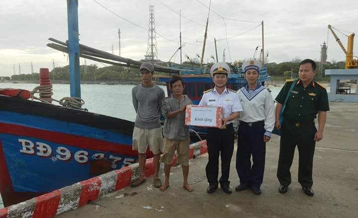 Anh Đặng Hoài Dũng, Thuyền trưởng Tàu cá BĐ 96475TS chia sẻ: Tôi cảm ơn sự tận tình giúp đỡ của cán bộ, nhân viên Đội dịch vụ Âu tàu, Hải đoàn 128 Hải quân và cán bộ, chiến sĩ đảo Song Tử Tây. Việc hỗ trợ và cứu giúp này chúng tôi yên tâm khai thác hải sản ở ngư trường truyền thống của đất nước.