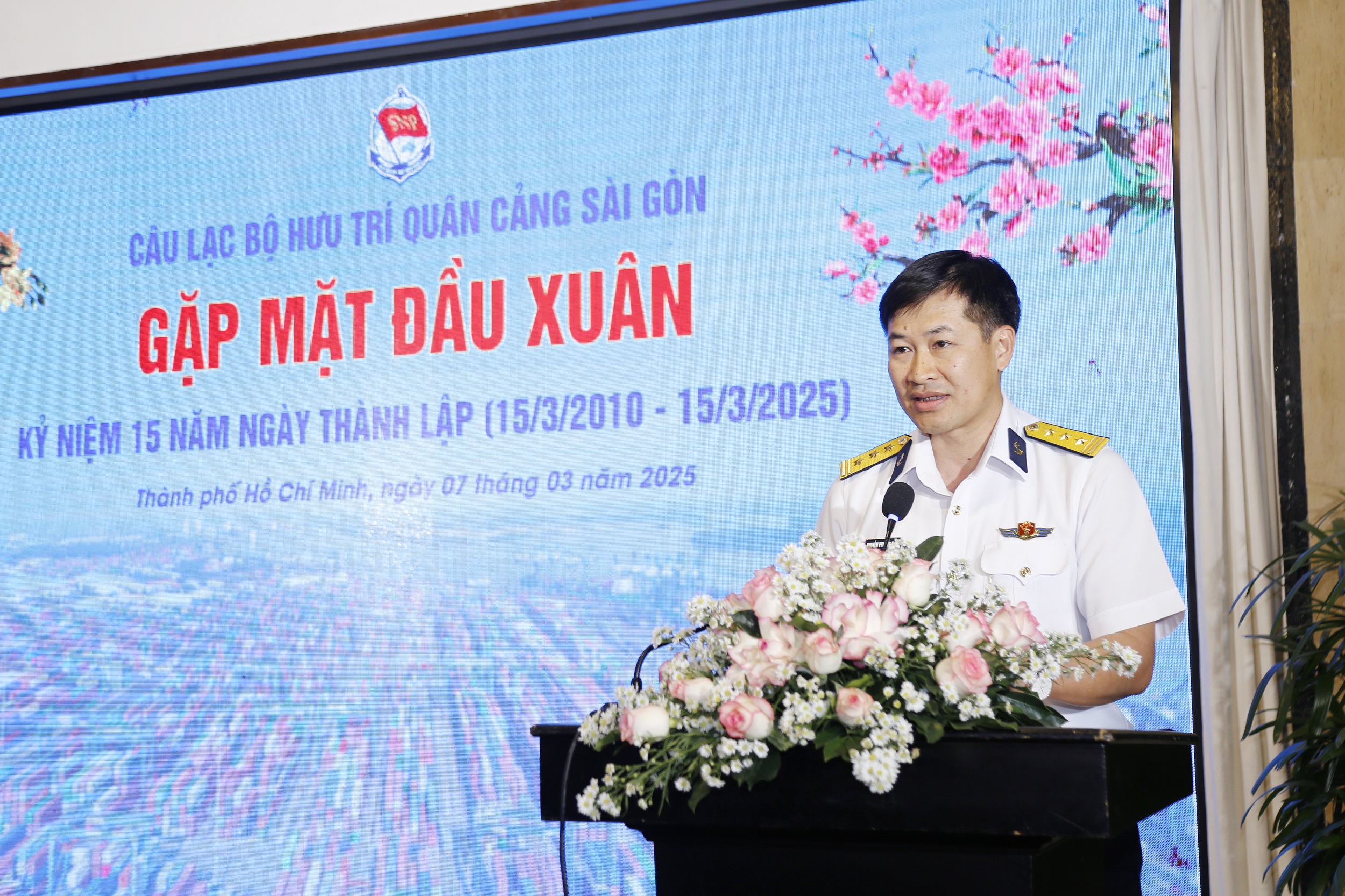 Phát biểu tại buổi họp mặt, Thượng tá Nguyễn Phương Nam, Phó tổng giám đốc Tân cảng Sài Gòn đã gửi lời chúc sức khỏe và tri ân các thế hệ đã công tác, công hiến tại Tổng công ty Tân cảng Sài Gòn.