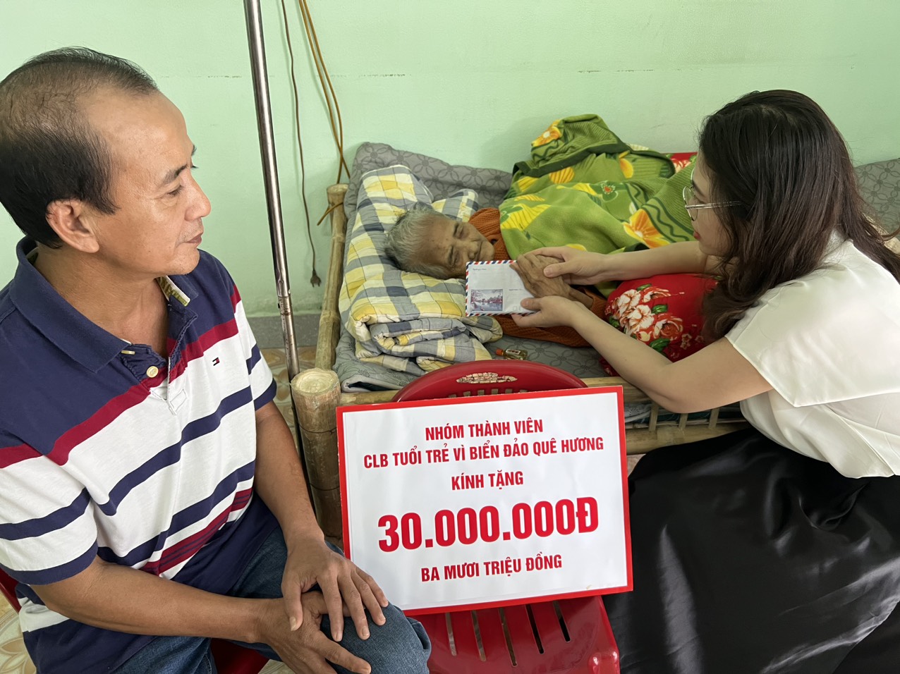 Dịp này, Câu lạc bộ “Tuổi trẻ vì biển đảo quê hương” đã tặng gia đình bà Nguyễn Thị Trước số tiền 30 triệu đồng.
