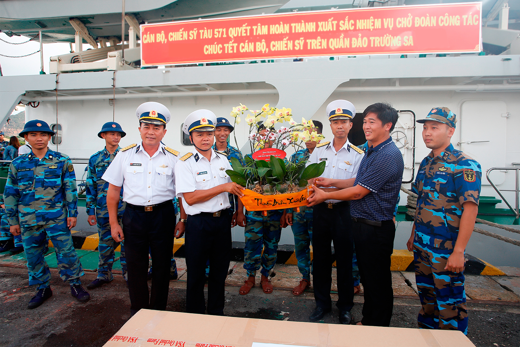 Cũng trong dịp này, Hiệp hội hoa Đà Lạt gửi đến quân và dân huyện đảo Trường Sa 500 giỏ phong lan.