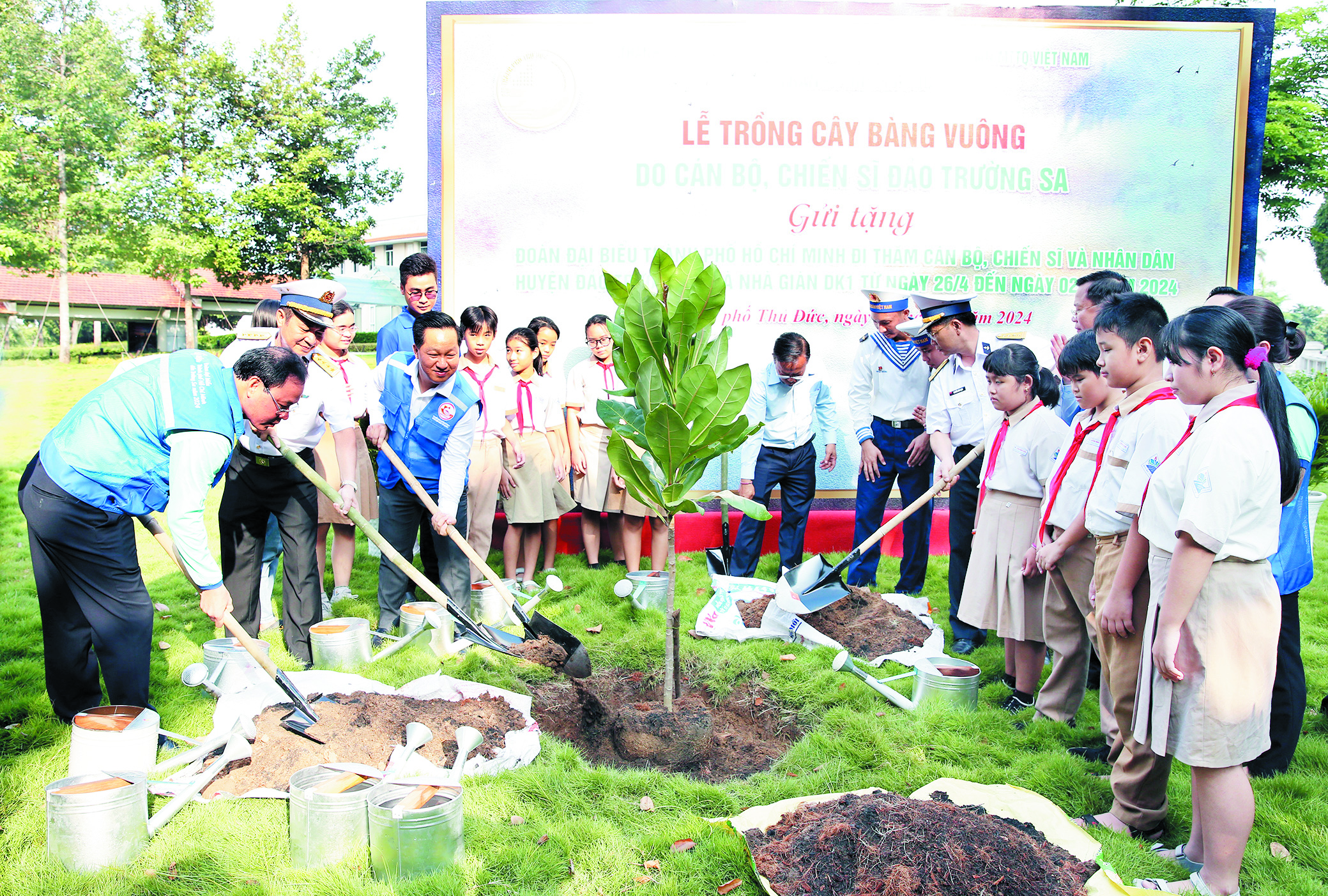 Phát biểu trong buổi lễ trồng cây tại 2 ngôi trường này đồng chí Nguyễn Phước Lộc, Phó Bí thư Thành ủy, Trưởng đoàn đại biểu TP. Hồ Chí Minh nhấn mạnh: Cán bộ, chiến sĩ và nhân dân huyện đảo Trường Sa gửi tặng cây bàng quả vuông để nói lên tình cảm đặc biệt, sâu sắc nghĩa tình với đất liền. Chúng ta nhận về niềm tin và ý chí, tinh thần tự hào quật cường của quân, dân Trường Sa. Ở nơi biển đảo xa xôi, có rất nhiều người trẻ như các em học sinh ở đây hoặc lớn hơn một chút, đang thực hiện nhiệm vụ cao cả mà Đảng, Nhà nước, Quân đội nhân dân Việt Nam và nhân dân cả nước giao phó. Vì vậy, chúng ta phải có trách nhiệm với những người nơi biên cương, biển đảo Tổ quốc. Hãy làm tốt sứ mạng, chức trách của mình ở đất liền.