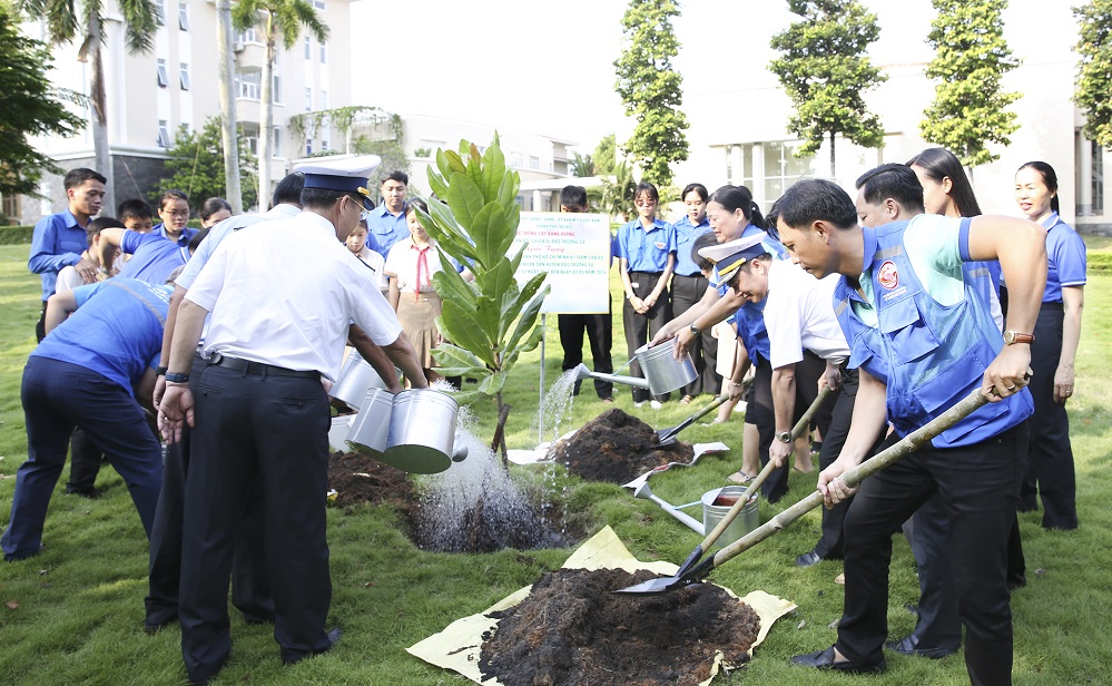 Cây bàng quả vuông được đoàn đại biểu TP. Hồ Chí Minh trồng tại TP. Thủ Đức tháng 5/2024