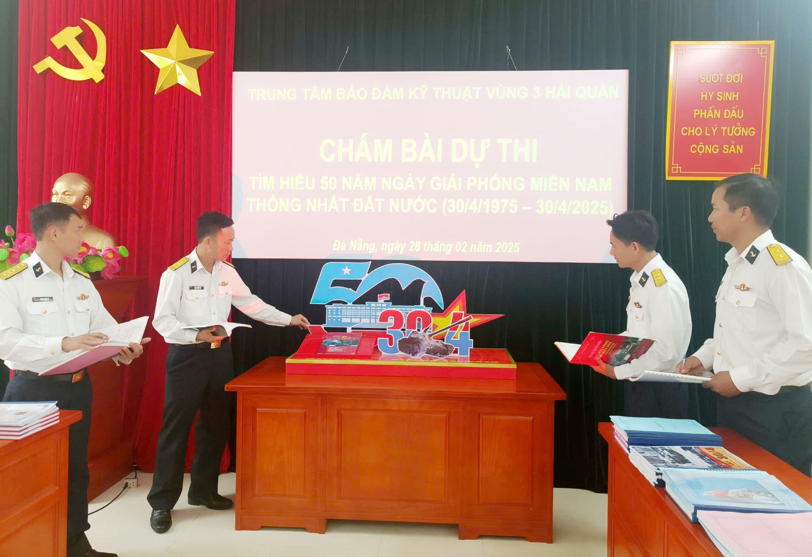Ngày 28/2, tại Đà Nẵng, Trung tâm Bảo đảm kỹ thuật Vùng 3 Hải quân tổ chức chấm bài dự thi tìm hiểu "50 năm Ngày giải phóng miền Nam, thống nhất đất nước".