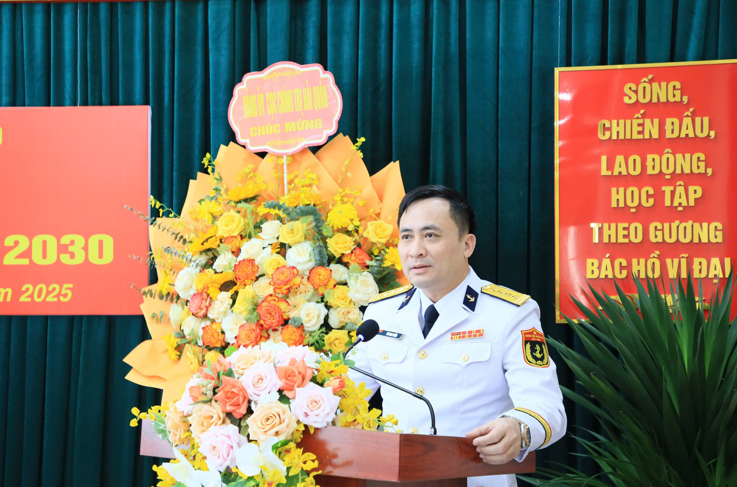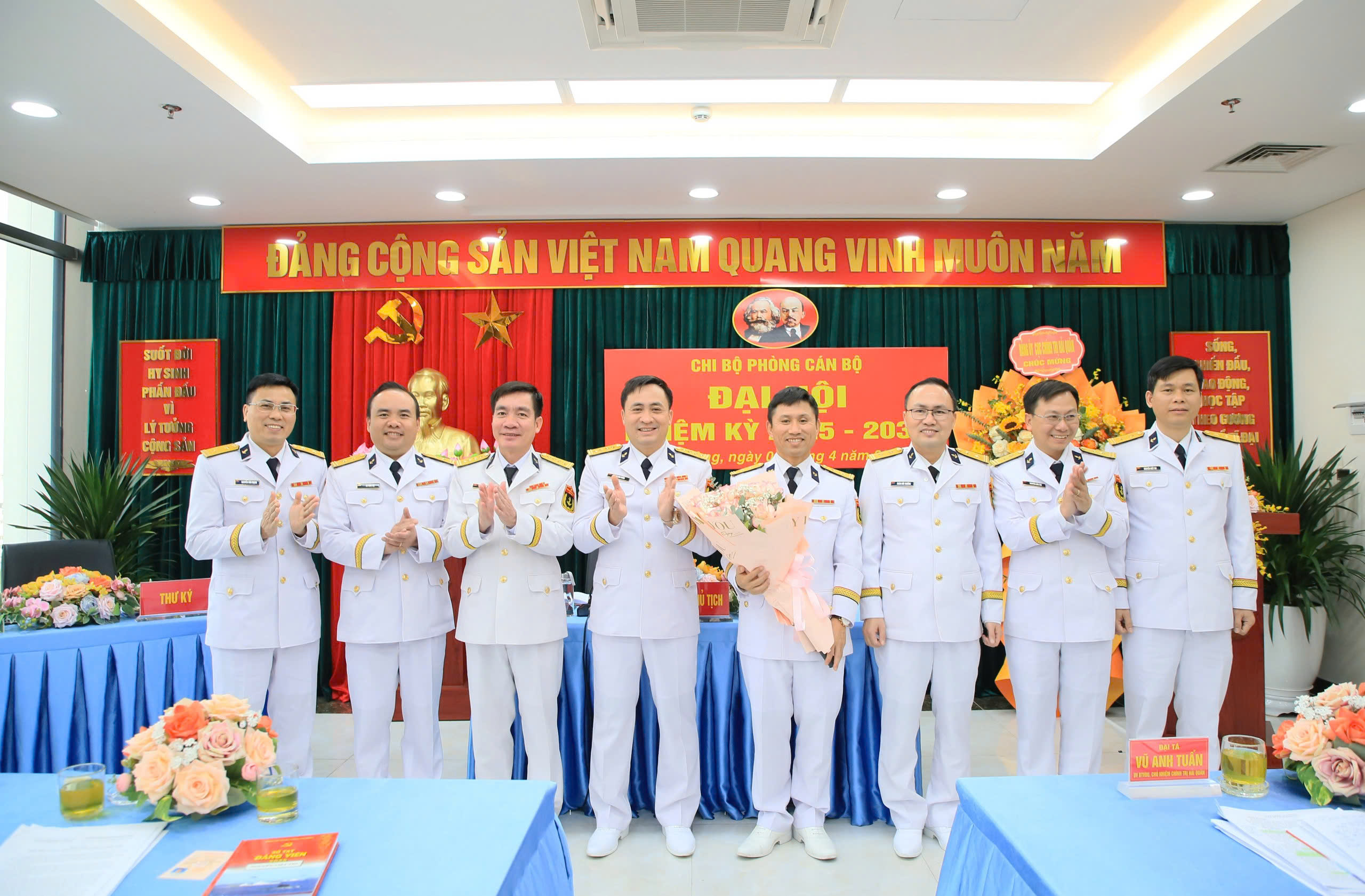 Đại tá Vũ Anh Tuấn chúc mừng Ban chấp hành Chi bộ nhiệm kỳ mới và các đại biểu dự Đại hội đại biểu Đảng bộ Cục Chính trị Hải quân lần thứ XV