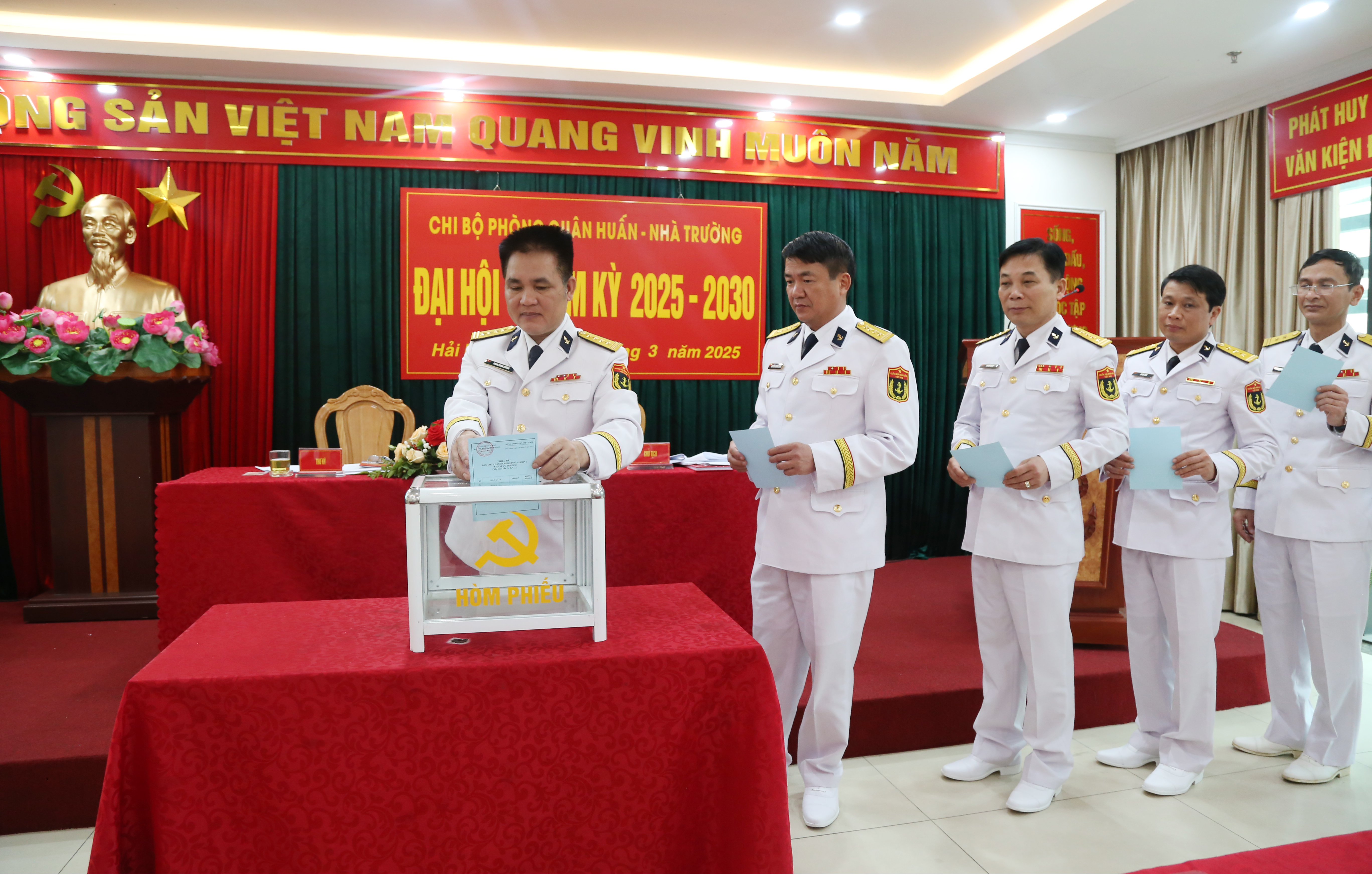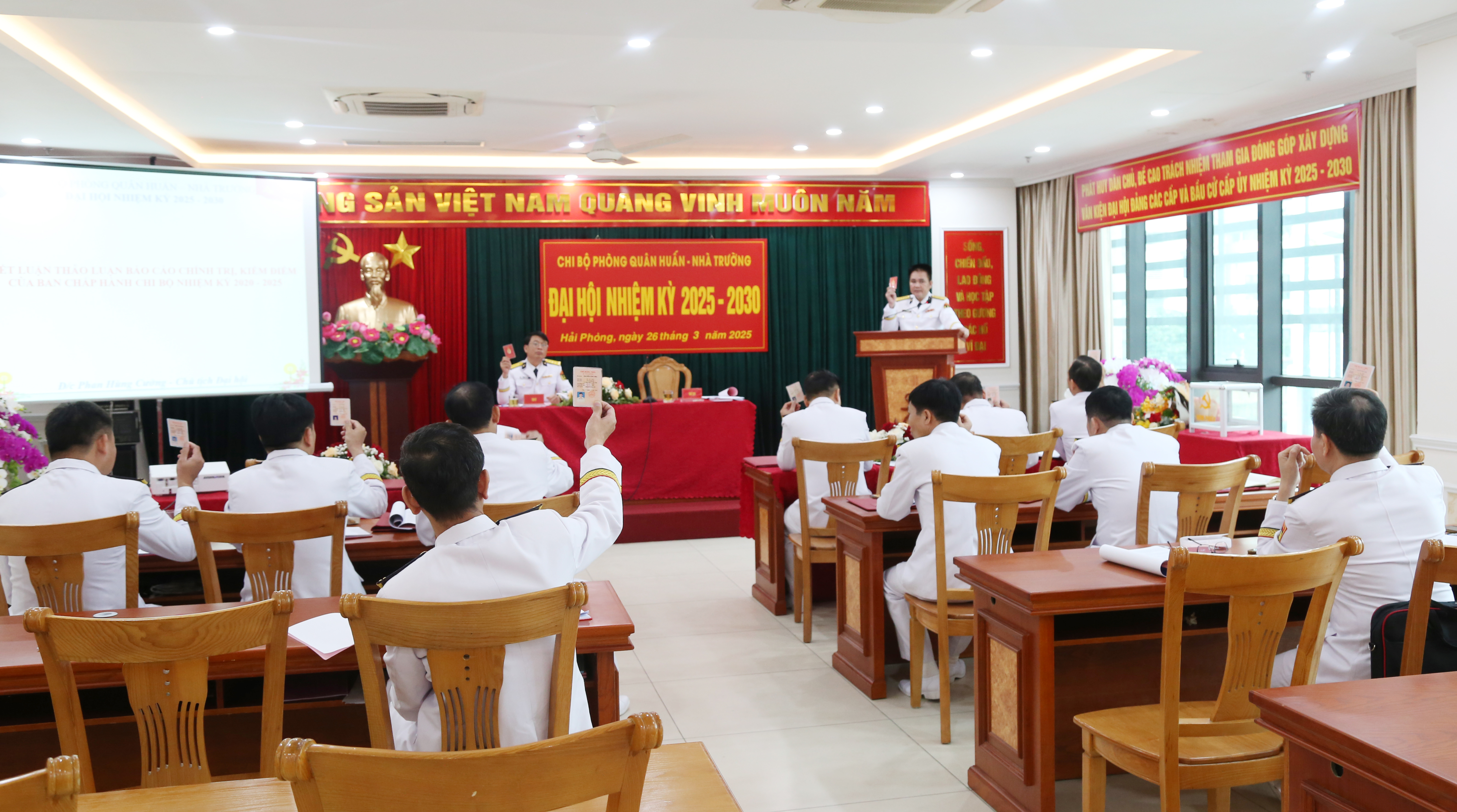 Đại hội cũng bầu 2 đại biểu chính thức, 1 đại biểu dự khuyết dự Đại hội đại biểu Đảng bộ Bộ Tham mưu Hải quân lần thứ XII.