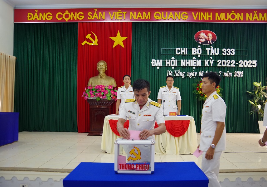 Sáng 6/7, tại TP. Đà Nẵng, Chi bộ Tàu 333, Đảng bộ bộ phận Hải đội 315, Đảng bộ Lữ đoàn 172, Vùng 3 Hải quân tổ chức Đại hội nhiệm kỳ 2022-2025. Đây là chi bộ được Đảng uỷ Vùng 3 chọn tổ chức đại hội trước để rút kinh nghiệm trong toàn Vùng.