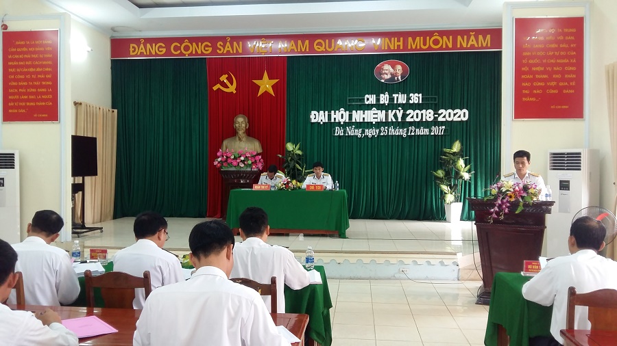 Sáng 25-12, tại Đà Nẵng, Chi bộ Tàu 361, Đảng bộ Lữ 172, Vùng 3 Hải quân tổ chức Đại hội nhiệm kỳ 2018-2020. Đây là Chi bộ được chọn làm trước để rút kinh nghiệm cho các chi bộ trong Đảng bộ Lữ đoàn.