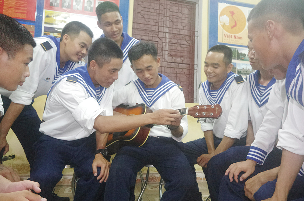 Chiến sĩ Đại đội 6 vượt sông tự học đàn ghi ta trong giờ nghỉ