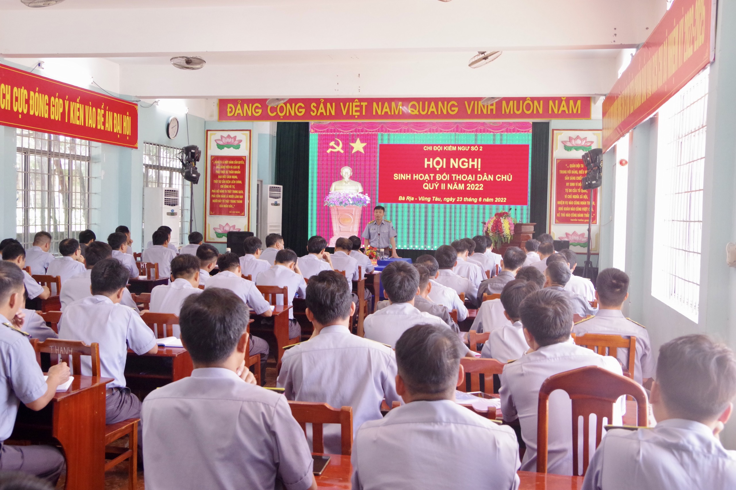 Chiều 23/6, tại TP. Vũng Tàu, tỉnh Bà Rịa-Vũng Tàu, Chi đội Kiểm ngư số 2 đã tổ chức Hội nghị sinh hoạt đối thoại dân chủ Quý II năm 2022.