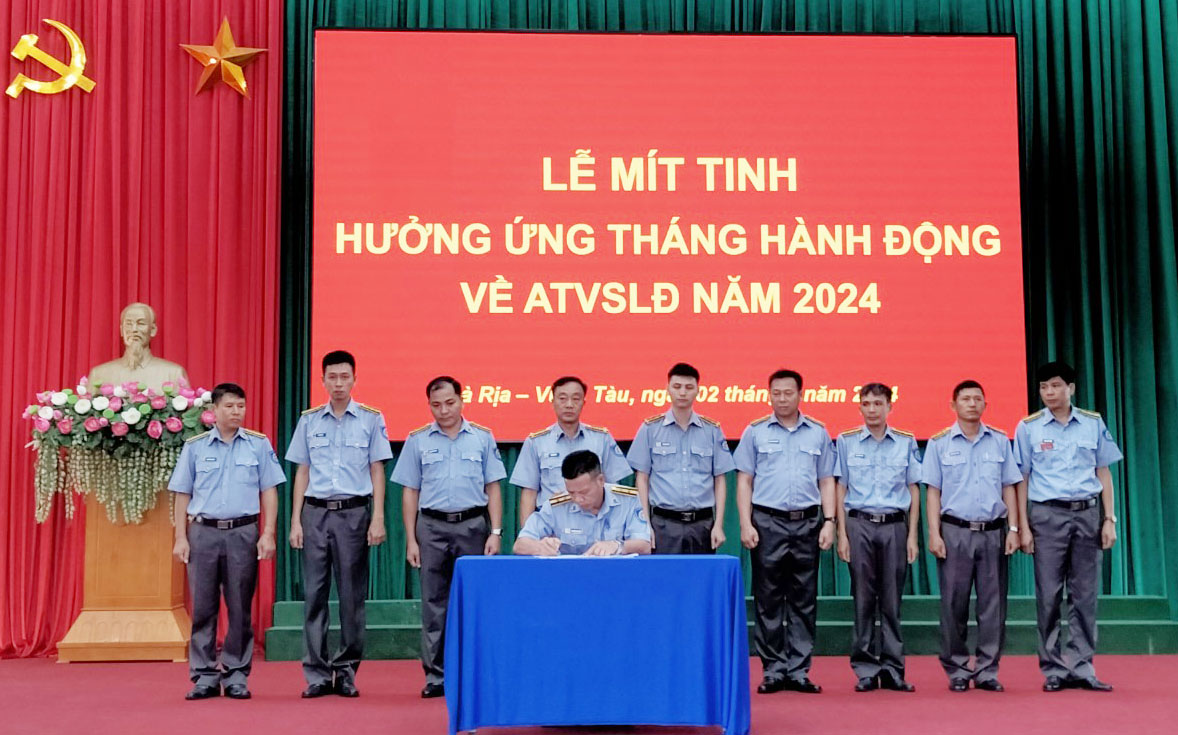 Tại lễ mít tinh, Chi đội đã tổ chức ký kết giao ước thi đua giữa các cơ quan, đơn vị hưởng ứng Tháng hành động về AT-VSLĐ năm 2024.