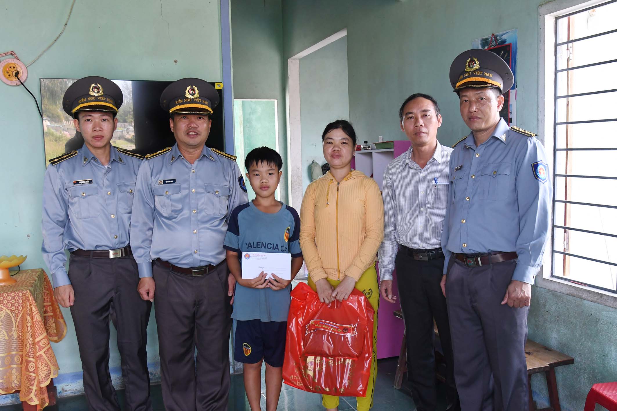 Sáng 7/2, tại huyện Núi Thành, tỉnh Quảng Nam, đoàn công tác của Chi đội Kiểm ngư số 3 do đồng chí Vũ Đức Giang, Chi đội trưởng làm trưởng đoàn đã đến tặng quà con ngư dân, gia đình chính sách trên địa bàn xã Tam Giang.