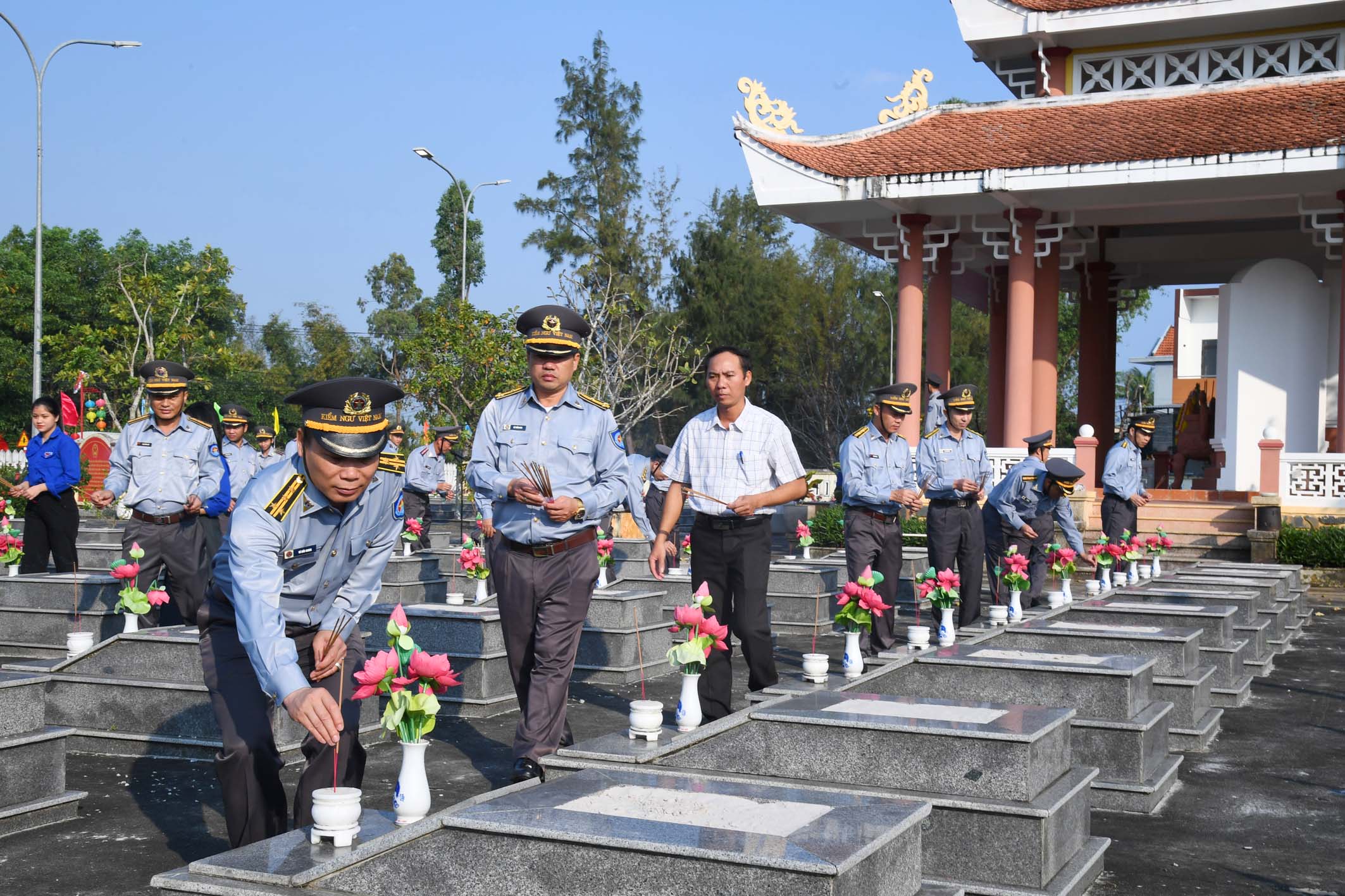 Thủ trưởng Chi đội và lãnh đạo xã Tam Giang thắp hương tại nghĩa trang liệt sĩ