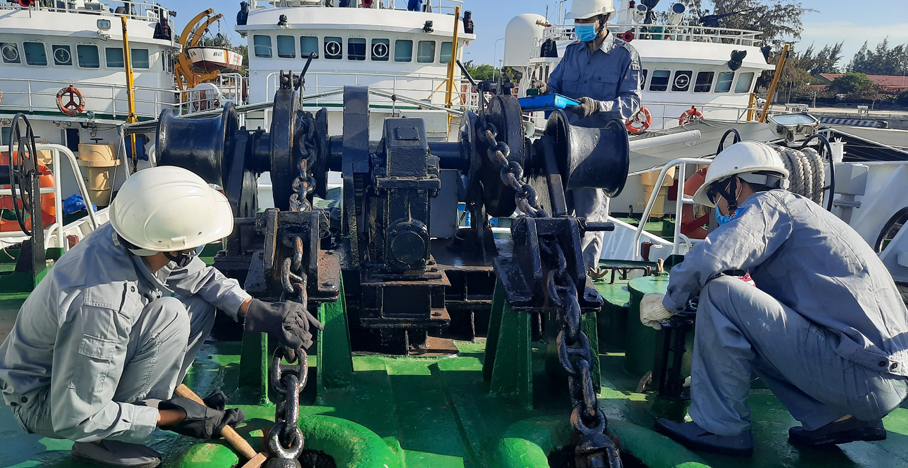 Cán bộ, nhân viên kiểm ngư kiểm tra kỹ thuật tàu trước khi đi biển