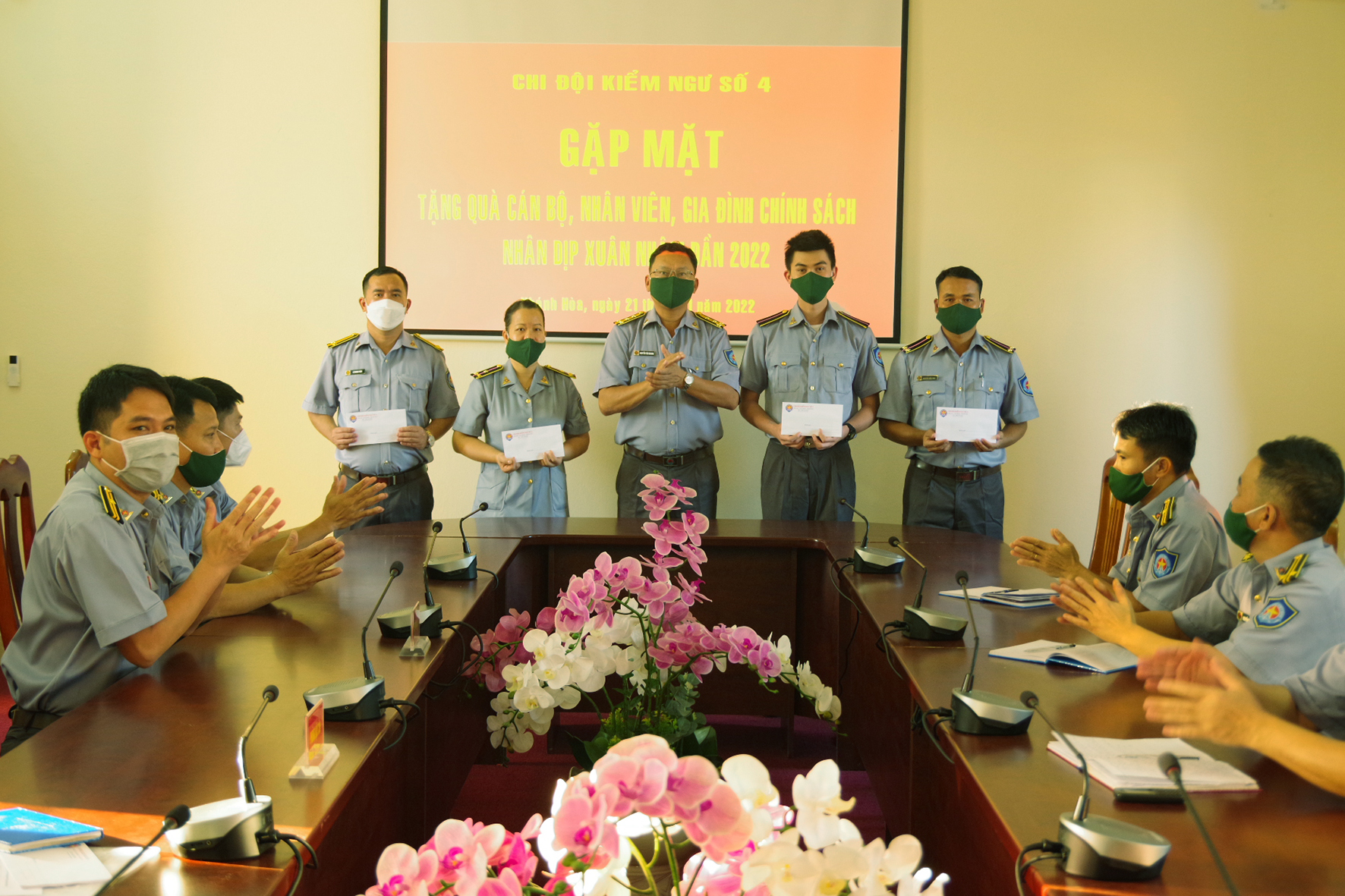 Với mong muốn đón một cái tết đầm ấm, vui tươi, không để dịch bệnh ảnh hưởng đến không khí vui xuân đón tết của cán bộ, nhân viên trong cơ quan, đơn vị, Chi đội Kiểm ngư số 4 chú trọng đến việc bảo đảm sức khỏe và an toàn vệ sinh thực phẩm và phòng chống dịch Covid-19. Cán bộ, nhân viên, chủ động thực hiện nghiêm các biện pháp phòng chống dịch, không để lây lan trong đơn vị.