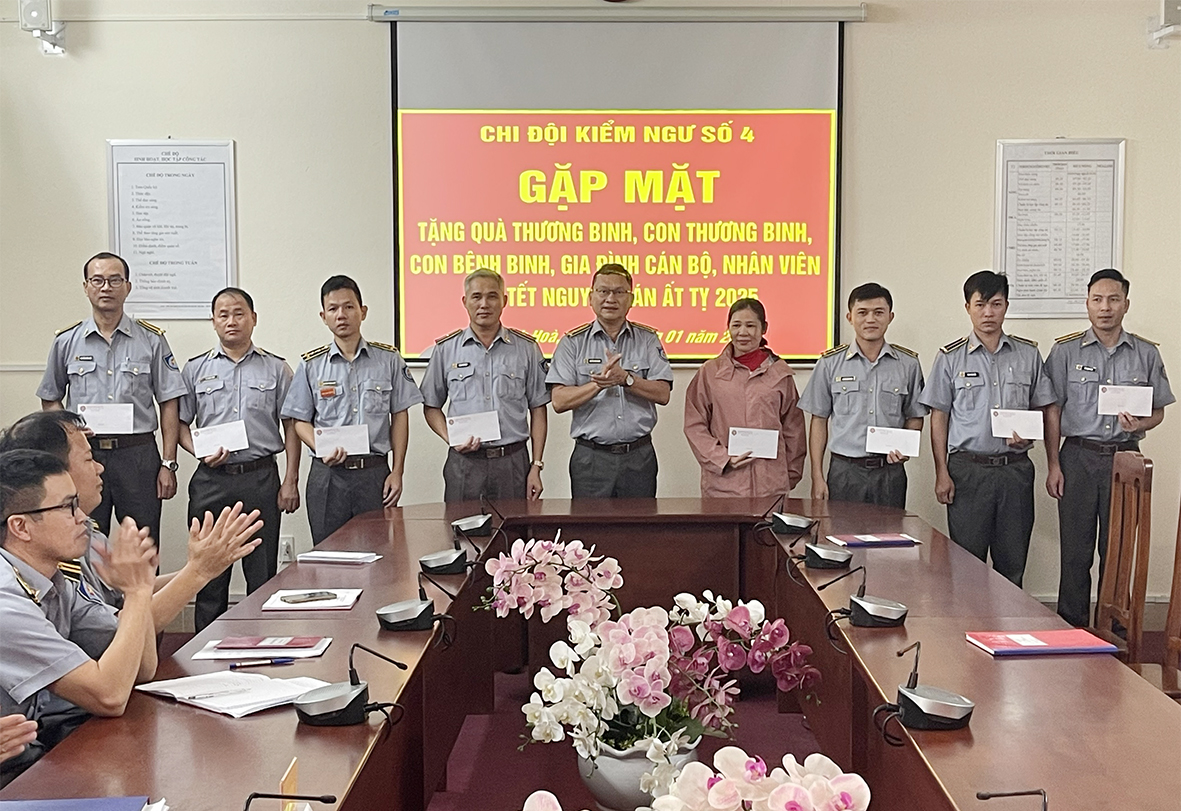 Ngày 21/1, Chi đội Kiểm ngư số 4 đã tổ chức tặng quà cho cán bộ, nhân viên thuộc diện gia đình chính sách, gia đình có hoàn cảnh khó khăn đang công tác tại Chi đội.
