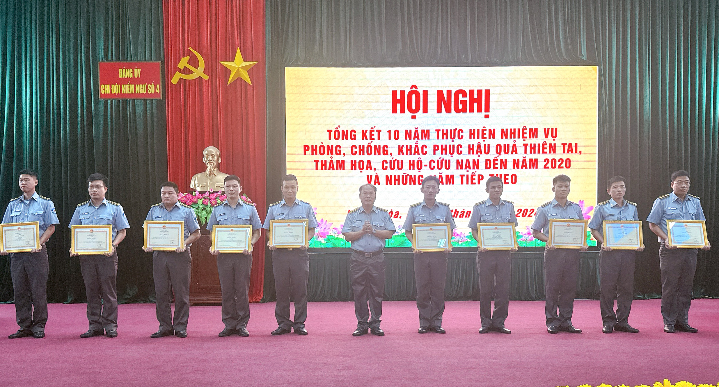 Dịp này, Chi đội Kiểm ngư số 4 đã tặng Giấy khen 5 tập thể và 5 cá nhân có thành tích đặc biệt tiêu biểu trong công tác tham gia cứu hộ, cứu nạn trên biển 10 năm qua.