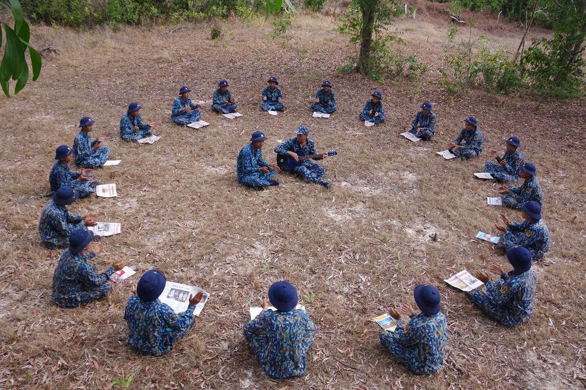 Giờ giải lao trên thao trường huấn luyện chiến sĩ mới của Tiểu đoàn 565