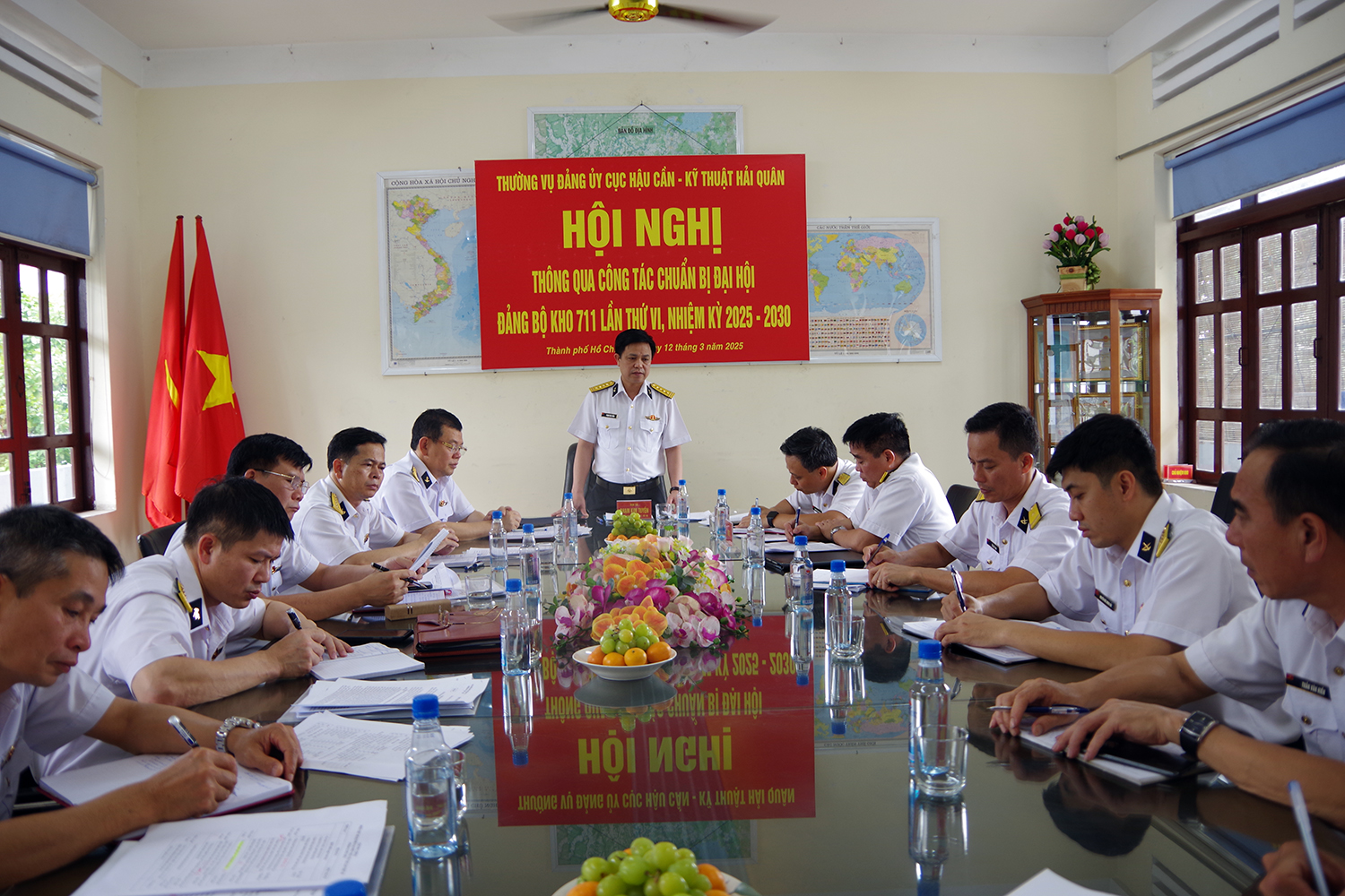 HQ Online - Chiều 12/3, tại TP. Hồ Chí Minh, đoàn công tác của Cục Hậu cần - Kỹ thuật Hải quân do Đại tá Phạm Kim Tuyến, Bí thư Đảng ủy, Chính ủy Cục làm trưởng đoàn đã kiểm tra, nắm tình hình hoạt động và thông qua công tác chuẩn bị tổ chức Đại hội Đảng bộ Kho 711 lần thứ VI, nhiệm kỳ 2025 - 2030.