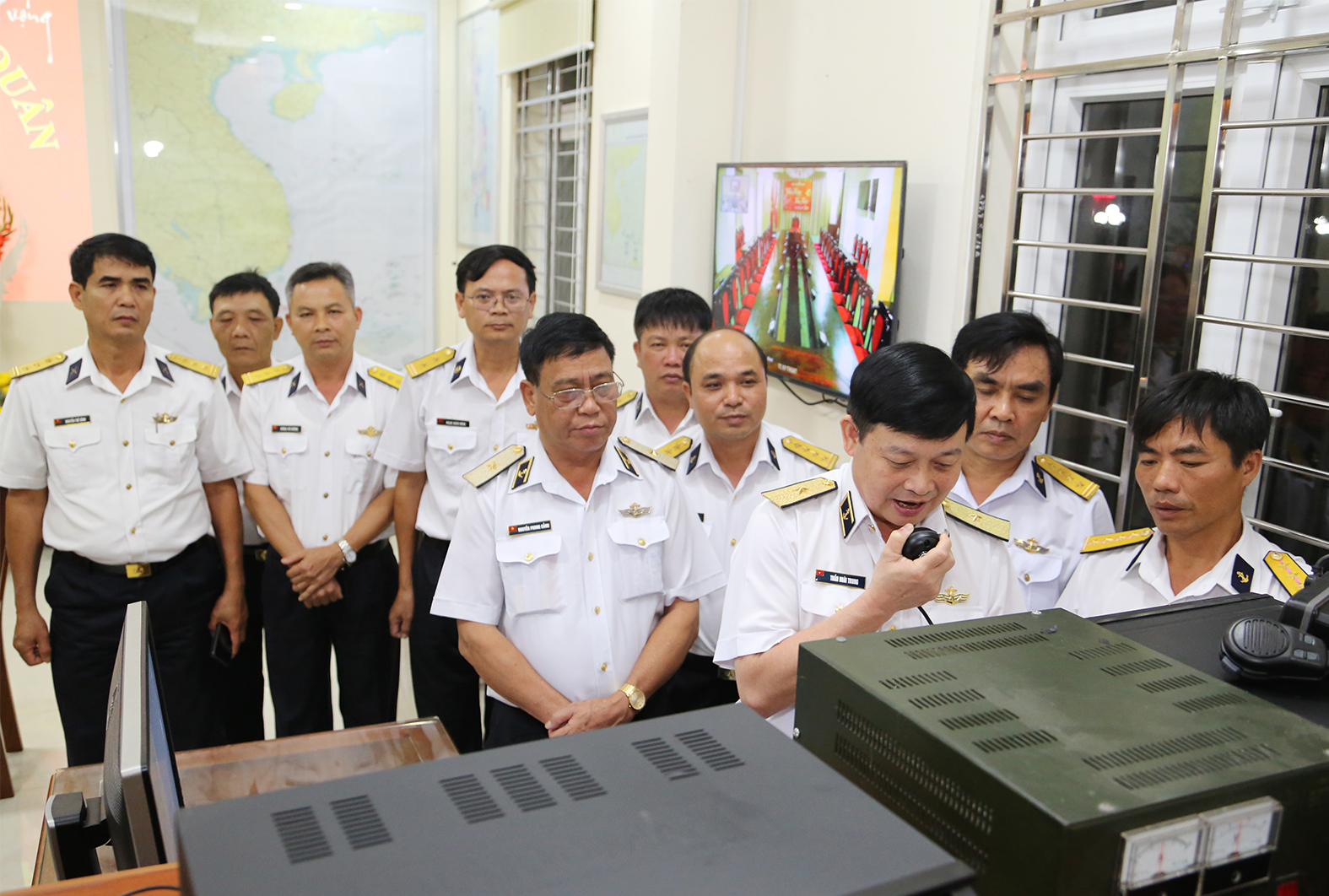 Đồng chí Chính ủy Hải quân chúc tết cán bộ, chiến sĩ trên các nhà giàn, tàu trực thông qua hệ thống thông tin