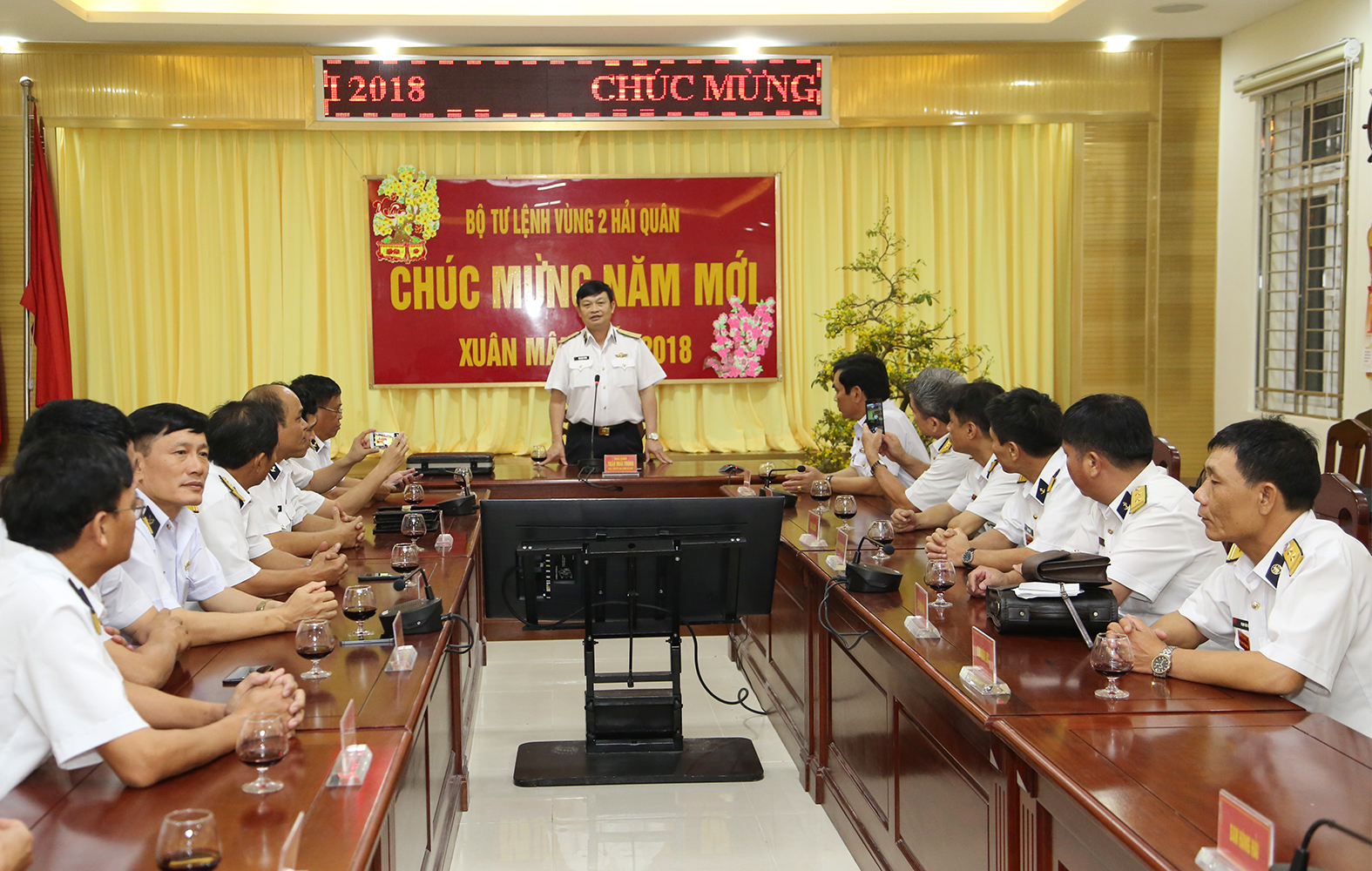 Tại Sở chỉ huy Bộ Tư lệnh Vùng 2, sau khi chúc mừng năm mới thủ trưởng Bộ Tư lệnh Vùng, các kíp trực tại Sở chỉ huy, đồng chí Chính ủy Hải quân đã trực tiếp chúc Tết cán bộ, chiến sĩ trên các nhà giàn và tàu trực thông qua hệ thống thông tin. Chỉ huy các nhà giàn, các tàu trực đã báo cáo với đồng chí Chính ủy Hải quân về tình hình thực hiện nhiệm vụ trực sẵn sàng chiến đấu và tổ chức cho cán bộ, chiến sĩ đón Tết. 100% cán bộ, chiến sĩ yên tâm công tác, xác định tốt nhiệm vụ được giao, nhất là nhiệm vụ trực sẵn sàng chiến đấu.