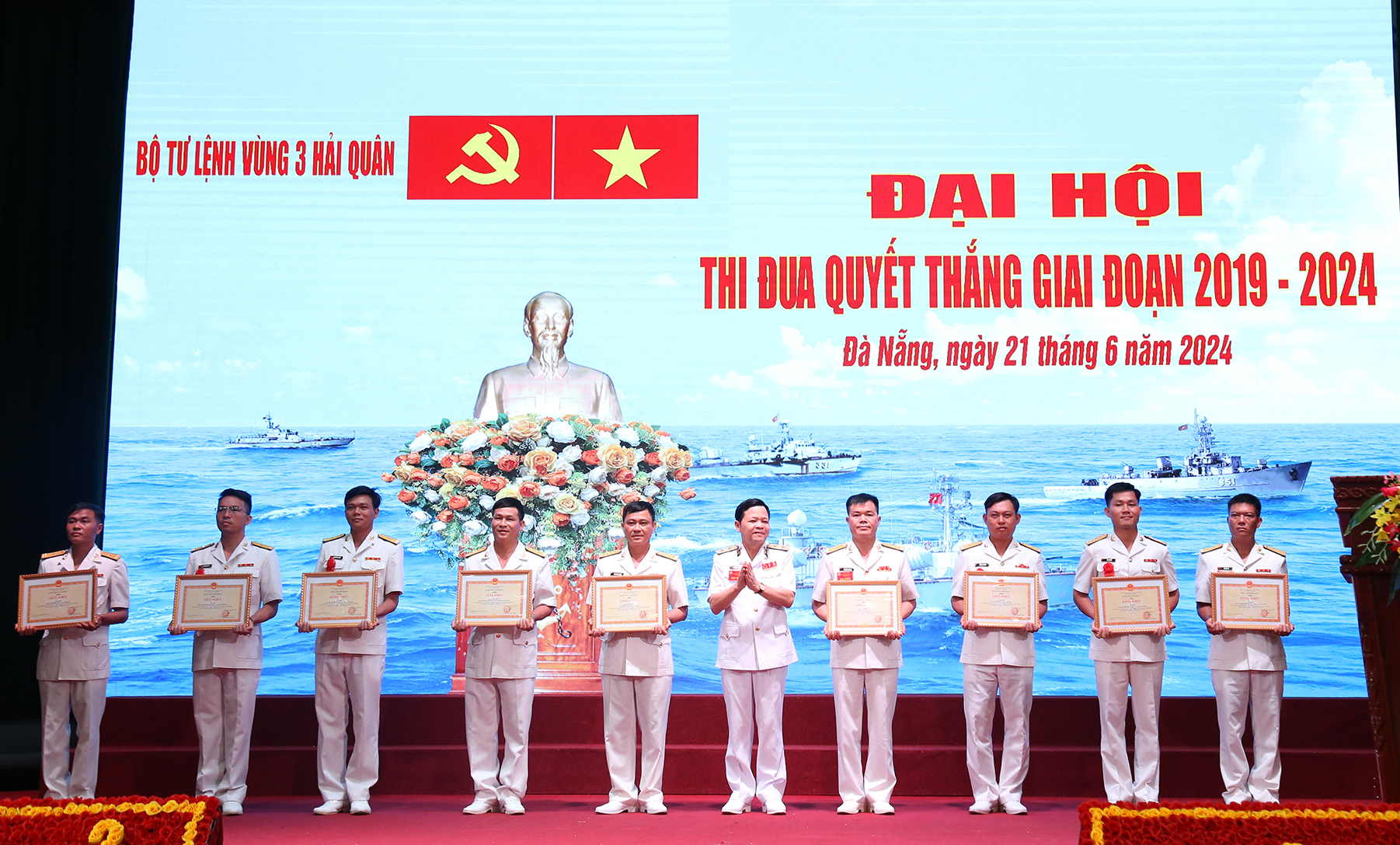 Dịp này, thủ trưởng Bộ Tư lệnh Hải quân và Bộ Tư lệnh Vùng 3 đã khen thưởng 18 tập thể, cá nhân đã có thành tích xuất sắc trong thực hiện phong trào TĐQT giai đoạn 2019-2024.
