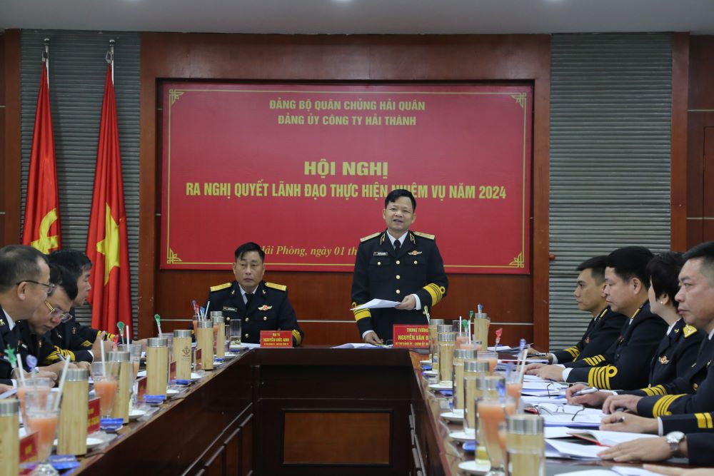 Chính ủy Hải quân dự Hội nghị ra nghị quyết lãnh đạo thực hiện nhiệm vụ năm 2024 tại Công ty Hải Thành