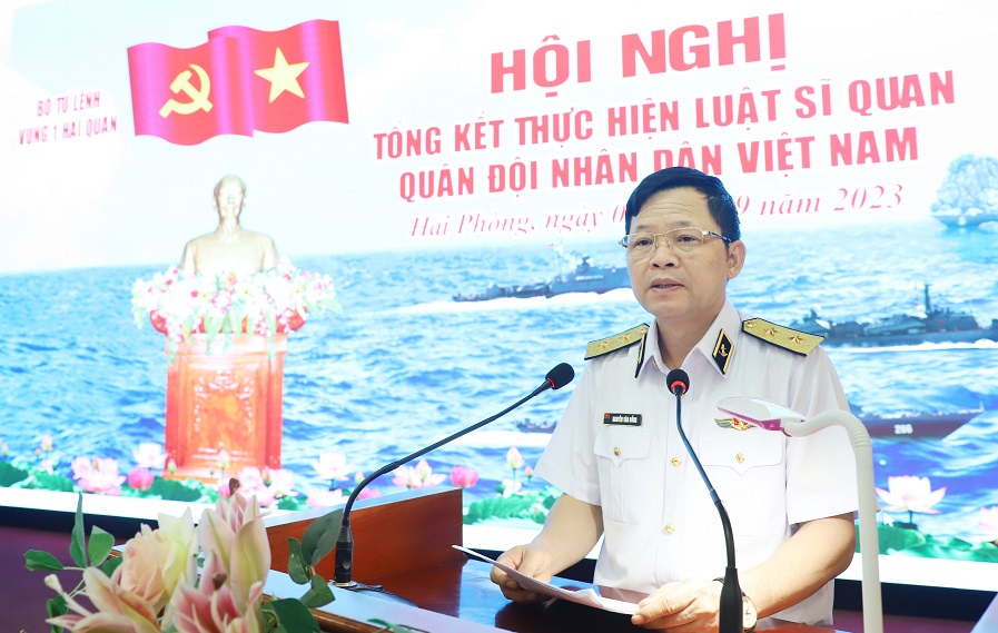 Phát biểu tại hội nghị, Trung tướng Nguyễn Văn Bổng, ghi nhận, biểu dương những kết quả nổi bật của Vùng 1 Hải quân trong triển khai, thực hiện Luật Sĩ quan thời gian qua.