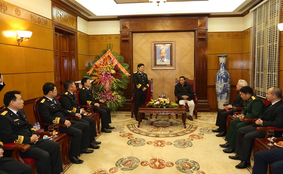 Cũng trong buổi sáng cùng ngày, Thiếu tướng Trần Hoài Trung đã tiếp Thiếu tướng Nguyễn Mạnh Hùng, Bí thư Đảng ủy, Chính ủy Quân khu 3 đến thăm và làm việc với Bộ Tư lệnh Hải quân.
