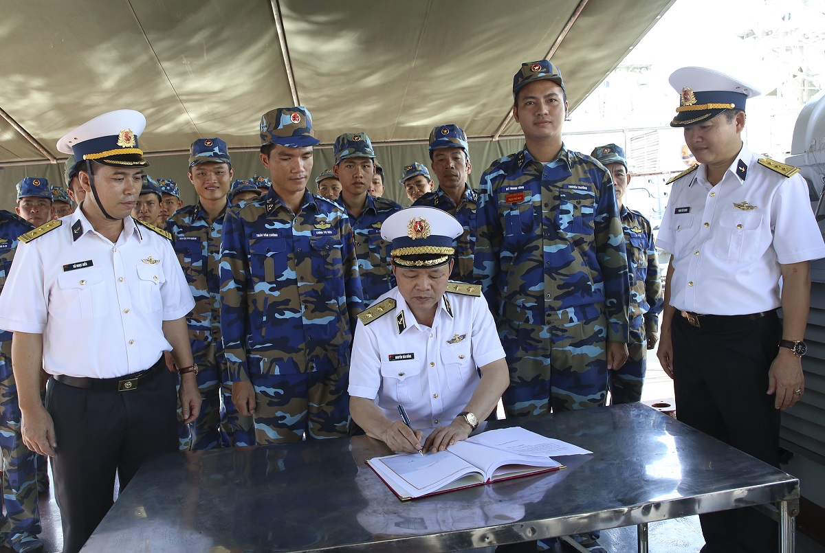 Chính ủy Hải quân ghi sổ lưu niệm của Tàu 331