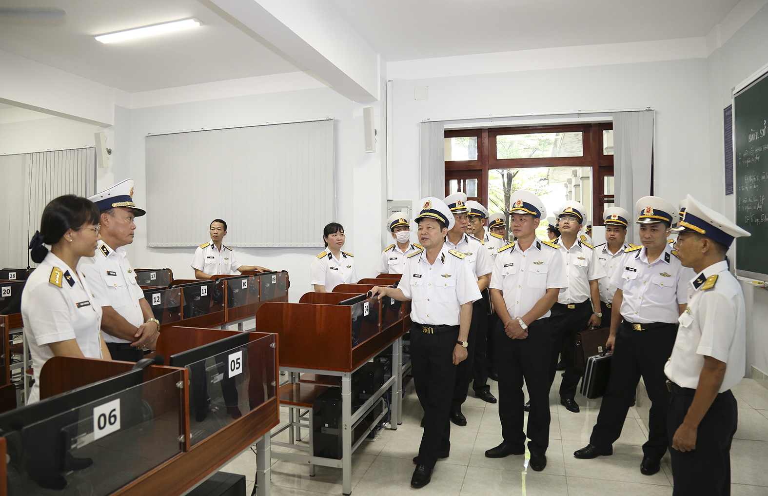 Đồng chí Chính ủy Hải quân tham quan phòng thực hành huấn luyện Khoa Khoa học cơ bản