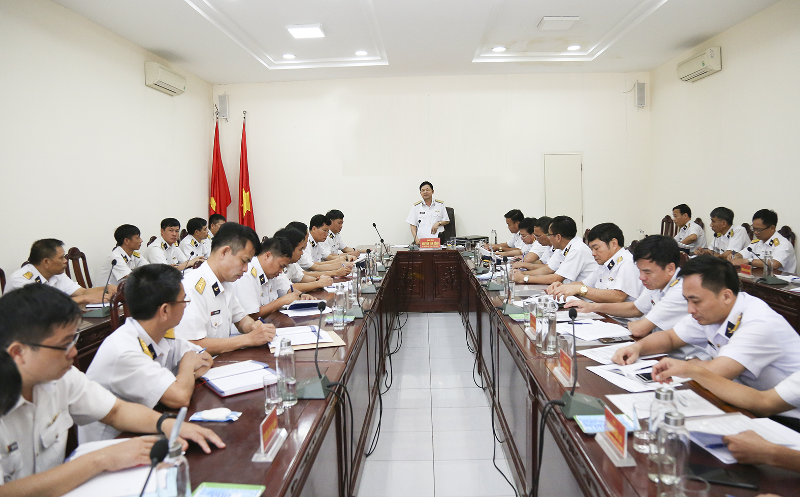 Đồng chí Chính ủy Hải quân phát biểu kết luận buổi làm việc