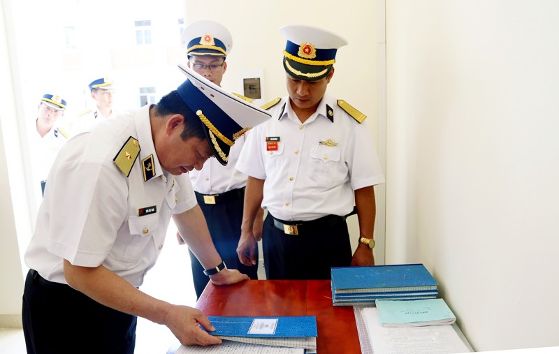 Chính ủy Hải quân kiểm tra việc đăng ký sổ sách chuyên ngành của Tiểu đoàn 455