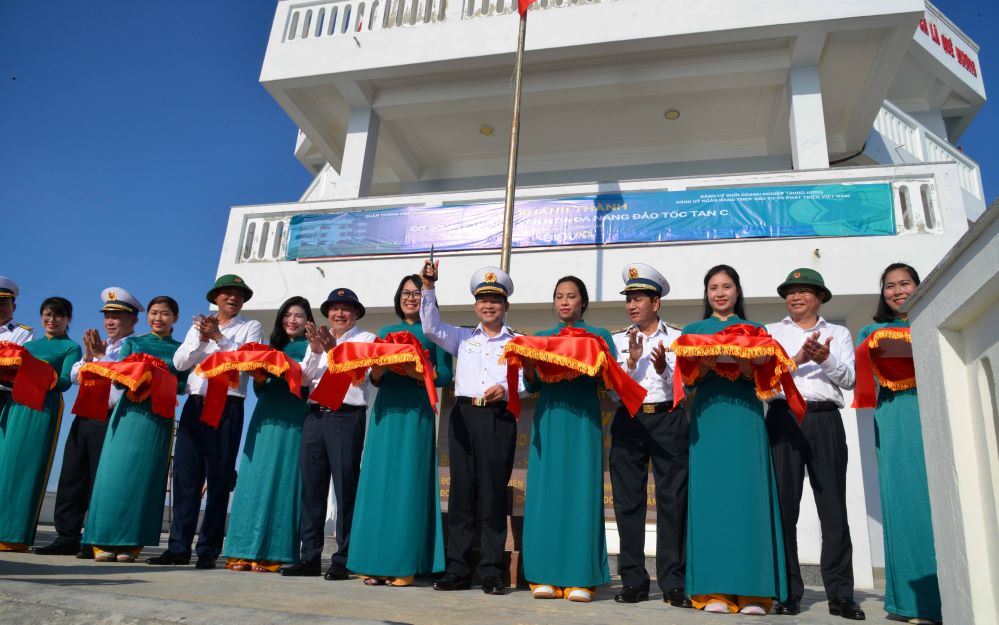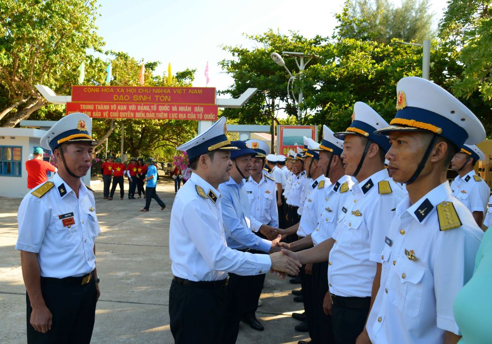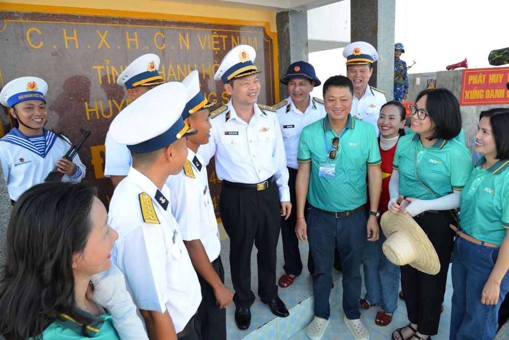 Đồng chí Chính ủy Hải quân đánh giá cao và cảm ơn tấm lòng, trách nhiệm, sự quan tâm đặc biệt của đất liền đối quân dân Trường Sa, trong đó có sự chung tay, góp sức của Đảng ủy Khối doanh nghiệp Trung ương và Ngân hàng BIVD, các địa phương, bộ, ngành, doanh nghiệp với những công trình rất ý nghĩa, hiệu quả thiết thực đối với Trường Sa.
