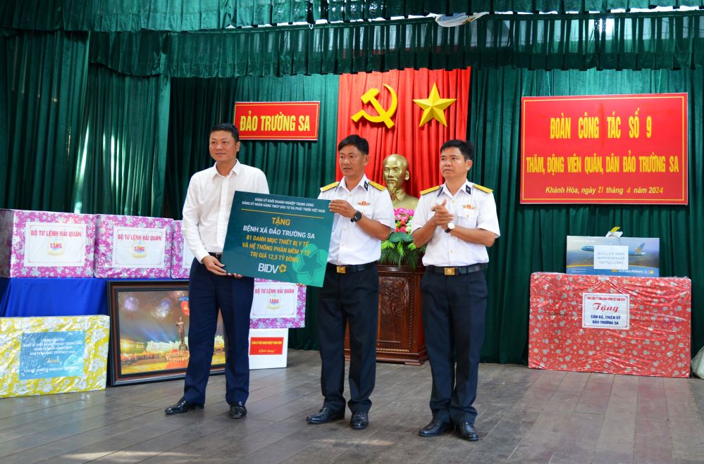 Đồng chí Lê Ngọc Lâm, Tổng Giám đốc BIDV trao tặng kinh phí hỗ trợ thiết bị y tế cho Trung tâm y tế Trường Sa trị giá 12,5 tỷ đồng