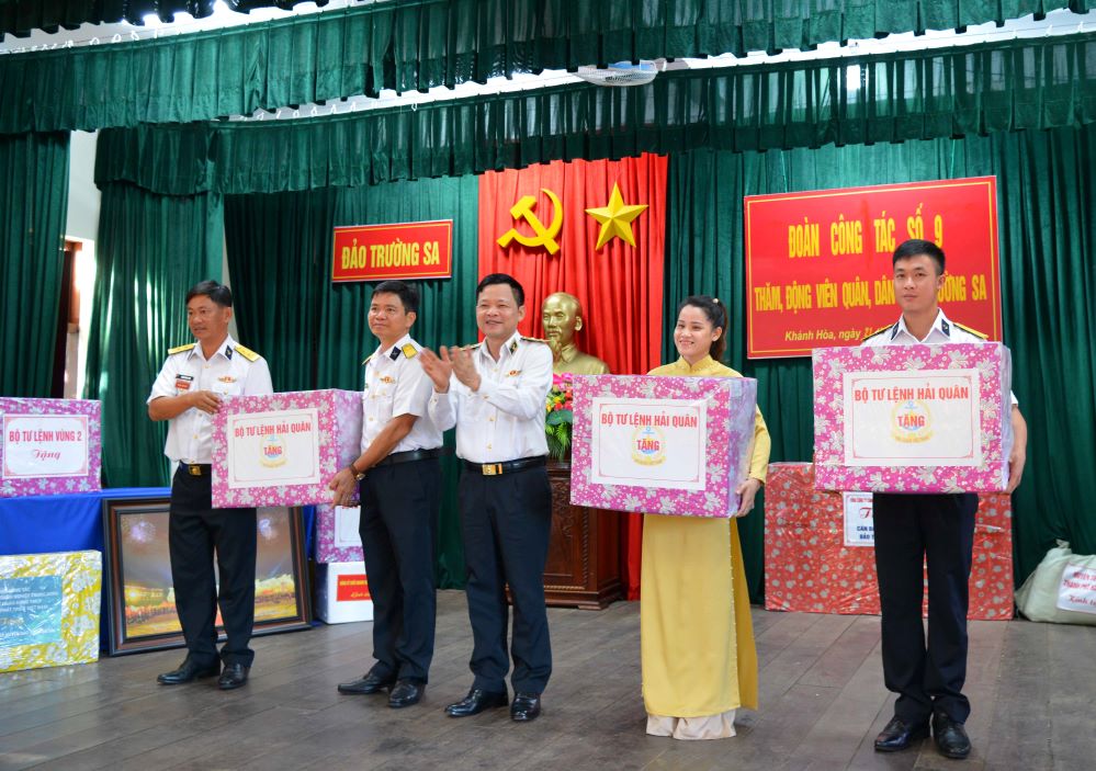 Tại các đảo, điểm đảo và Nhà giàn DKI, đoàn công tác cũng đã đến thăm, tặng quân dân huyện đảo Trường Sa, Nhà giàn DKI/19 những món quà thiết thực, góp phần cải thiện đời sống vật chất, tinh thần cho quân dân nơi đây với tổng giá trị hơn 700 triệu đồng (6 tủ cấp đông, 11 máy lọc nước, 100 quạt tích điện, 13 bộ máy tính bàn, 5 máy tính xách tay, 7 máy bơm nước, 1 tấn gạo nếp cái hoa vàng, 120 lít mật ong, hạt dưa giống…).