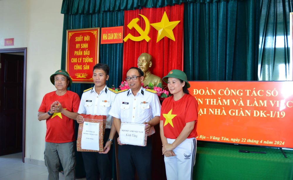 Đại diện Hội Điện ảnh Việt Nam tặng quà cán bộ, chiến sĩ Nhà giàn DK1/19