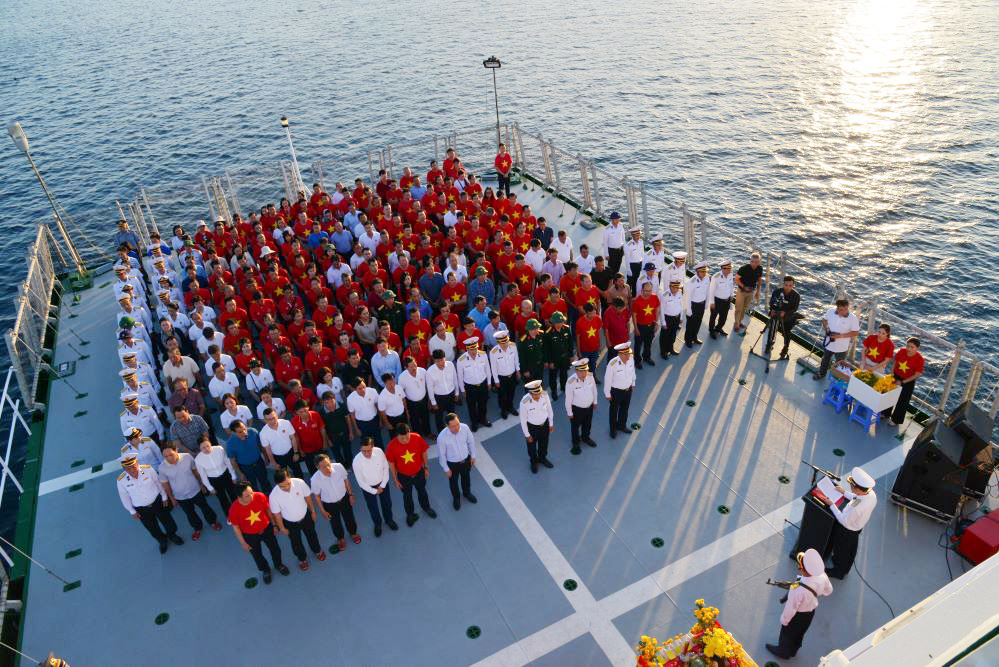 Trước khi tàu khởi hành, lãnh đạo đoàn công tác và các đại biểu đã đến dâng hương, dâng hoa tại Khu tưởng niệm các anh hùng, liệt sĩ đảo Gạc Ma ở Đài liệt sĩ xã Cam Hải Đông, Cam Lâm, Khánh Hòa; thăm Lữ đoàn Tàu ngầm 189; Lữ đoàn 162, Vùng 4 Hải quân.