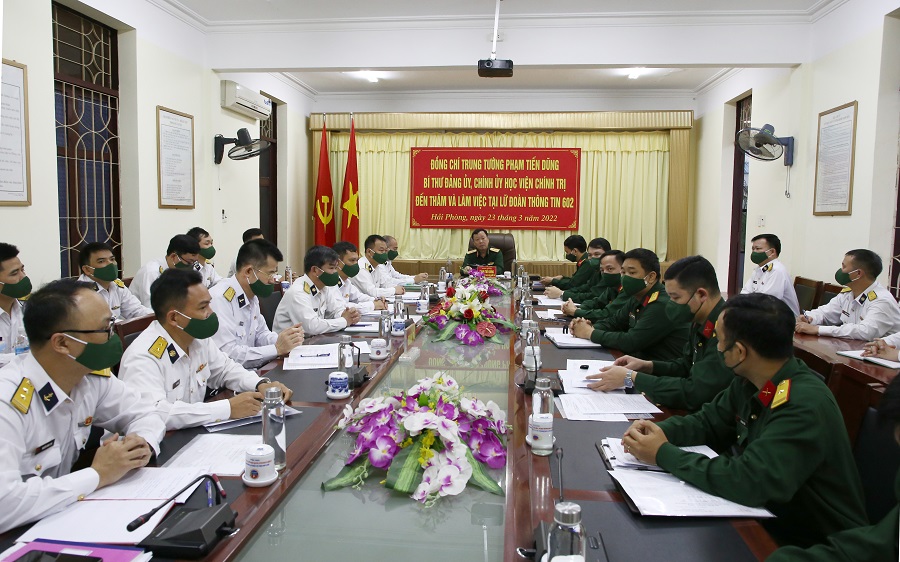 Sáng 23/3, tại Hải Phòng, đoàn công tác của Học viện Chính trị do Trung tướng Phạm Tiến Dũng, Bí thư Đảng ủy, Chính ủy Học viện làm trưởng đoàn đã đến thăm và làm việc với Lữ đoàn Thông tin 602, Bộ Tham mưu Hải quân.