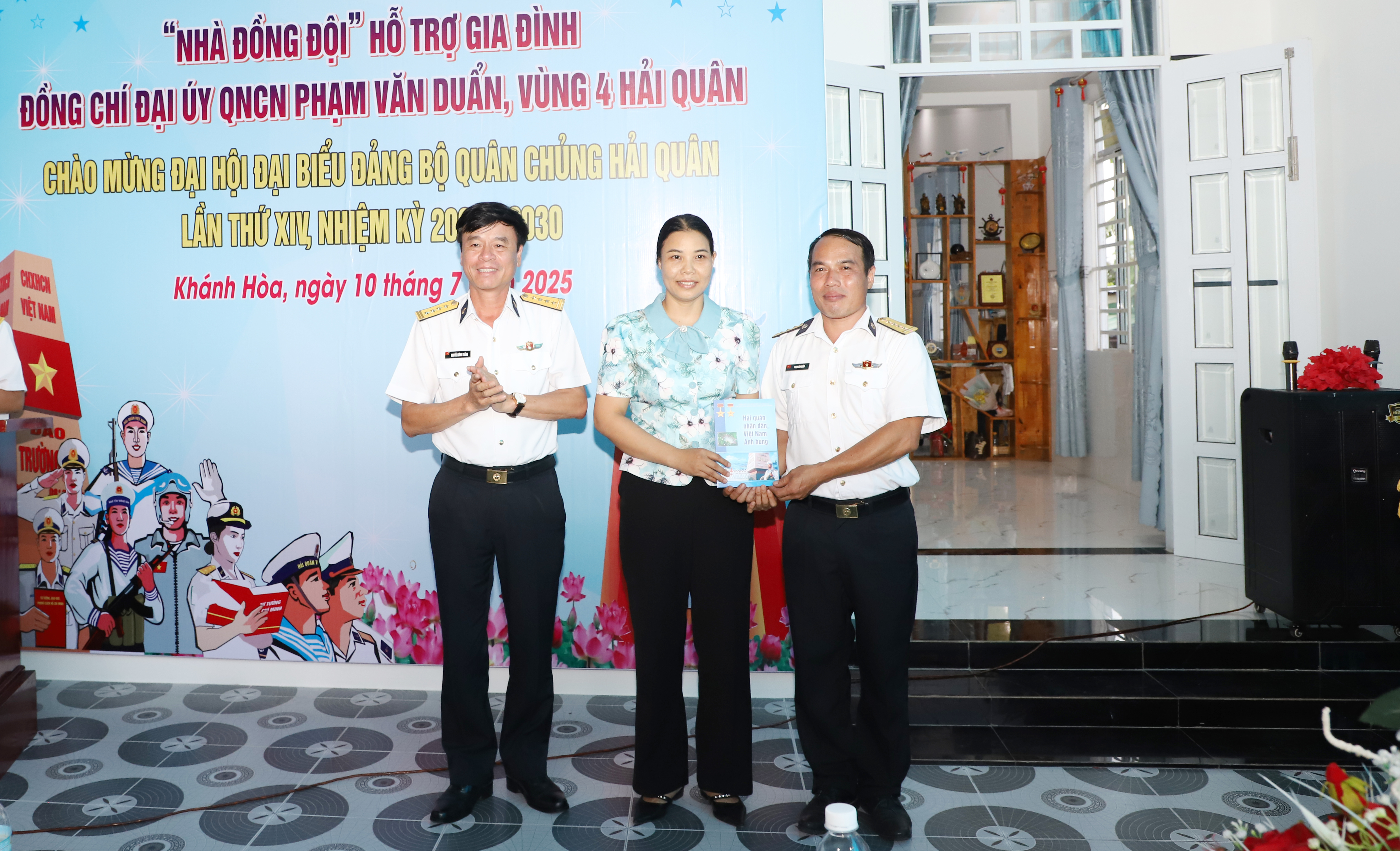 Chiều 10/7, tại xã Cam Lâm, tỉnh Khánh Hòa, Thiếu tướng Nguyễn An Phong, Bí thư Đảng ủy, Chính ủy Quân chủng Hải quân đã chủ trì cắt băng khánh thành và bàn giao nhà đồng đội tặng gia đình Đại úy QNCN Phạm Văn Duẩn, Nhân viên lái xe, Phòng Tham mưu, Lữ đoàn 685, Vùng 4 Hải quân.