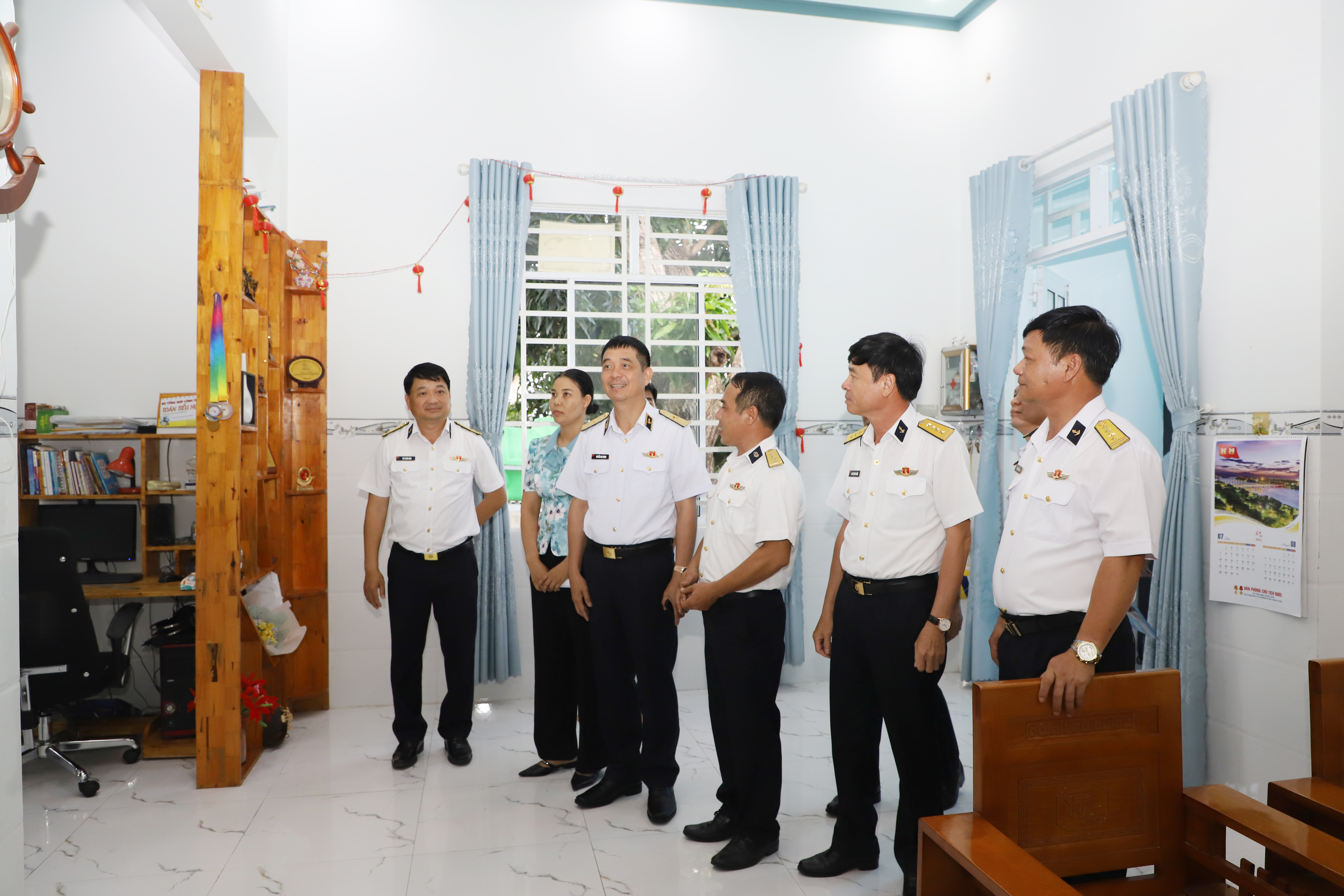 Đồng chí Chính ủy Quân chủng Hải quân và các đại biểu thăm căn nhà của gia đình Đại uý QNCN Phạm Văn Duẩn