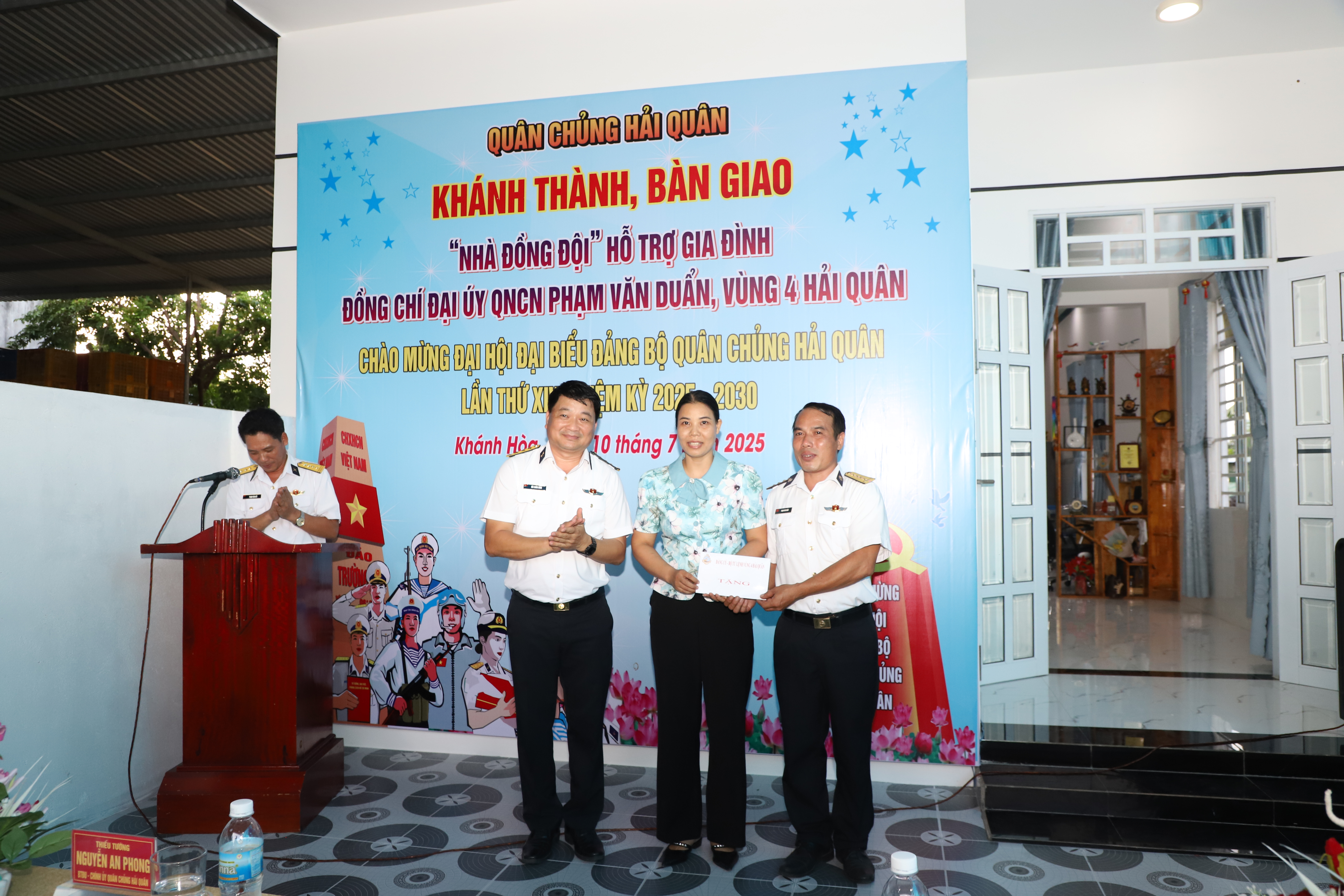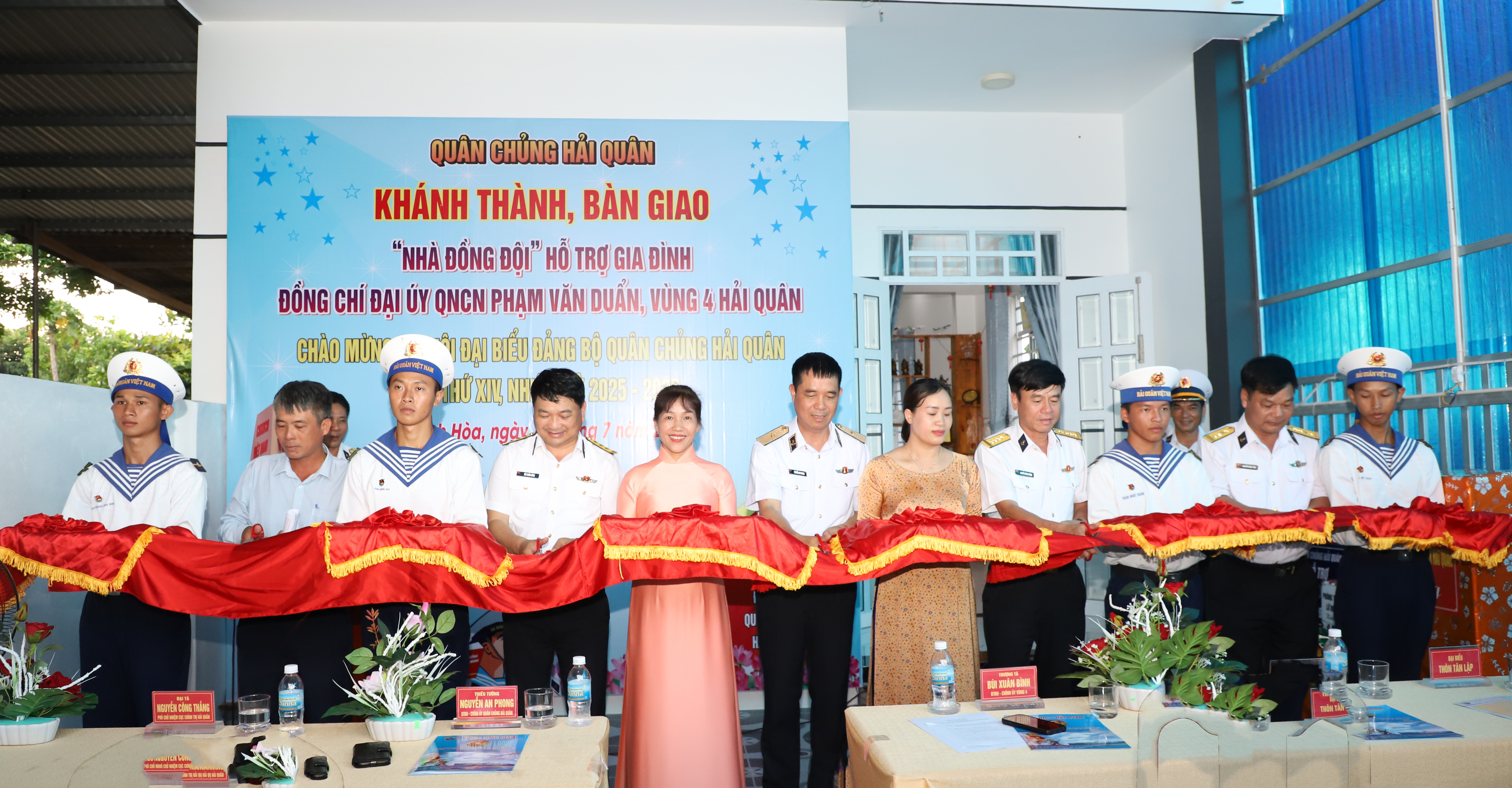Cùng dự cắt băng khánh thành và bàn giao nhà có Đại tá Nguyễn Công Thắng, Phó Chủ nhiệm Chính trị Hải quân; Thượng tá Bùi Xuân Bình, Bí thư Đảng uỷ, Chính uỷ Vùng 4; ông Phan Trịnh Minh Tân, Phó Chủ tịch thường trực UBMTTQ Việt Nam, Chủ tịch Hội Nông dân xã Cam Lâm.