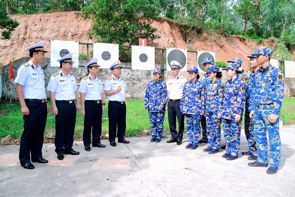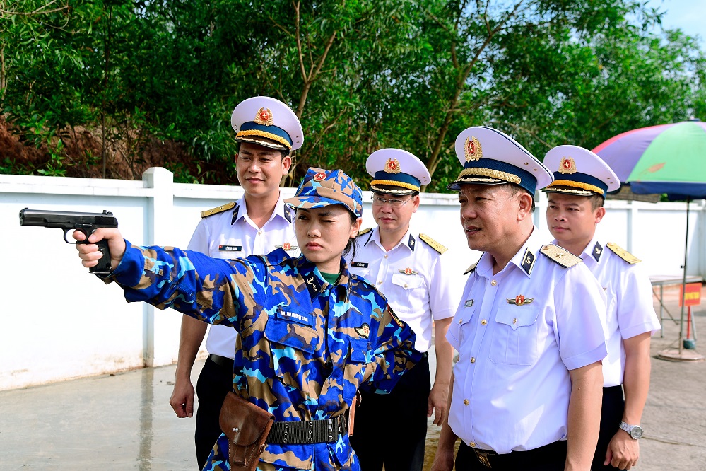 Cùng ngày, đoàn công tác cũng đến thăm và động viên đội tuyển của Vùng 1 đang luyện tập để tham gia Hội thao bắn súng quân dụng năm 2024 do Quân chủng Hải quân tổ chức.