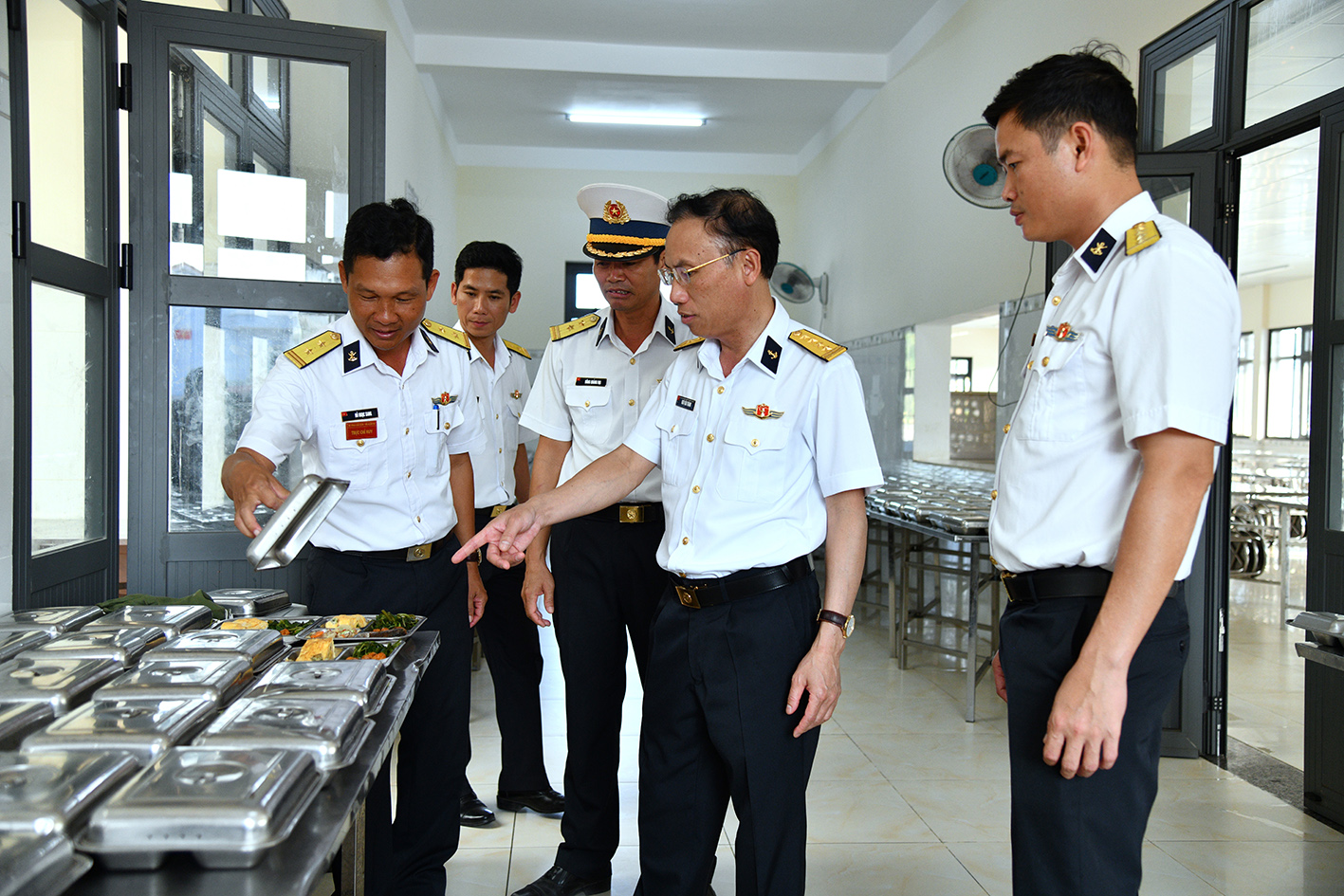 Đồng chí Chính ủy Vùng kiểm tra bếp ăn Tiểu đoàn 563