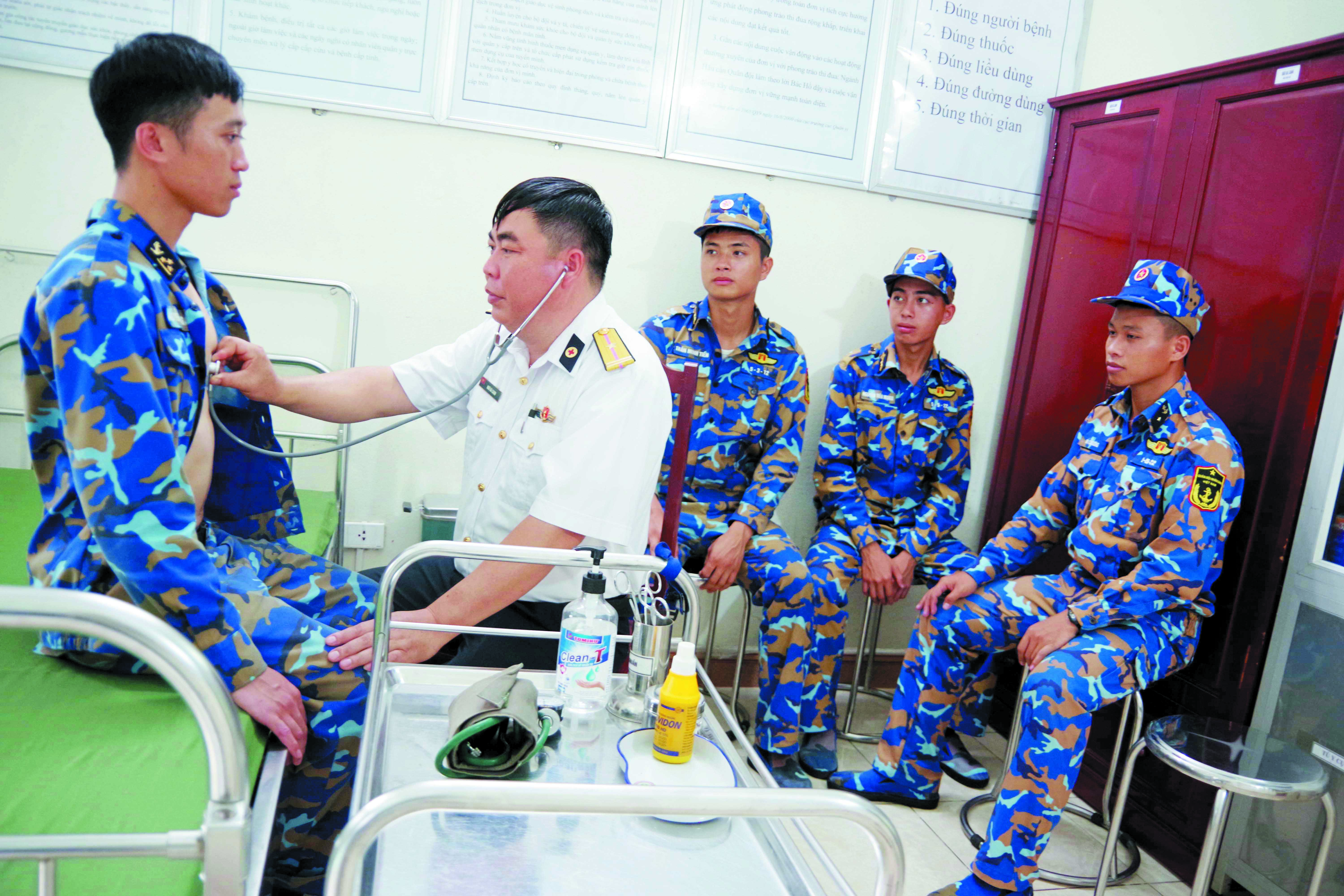 Quân y đơn vị kiểm tra sức khỏe bộ đội trước khi đi biển. Ảnh: Nguyễn Ước