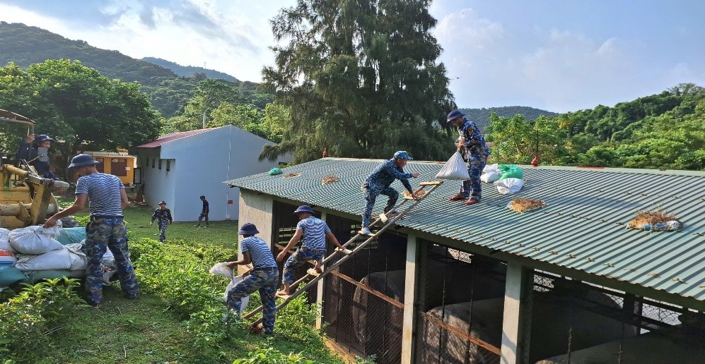 Cán bộ, chiến sĩ Trạm rađa 480 đảo Trần gia cố doanh trại