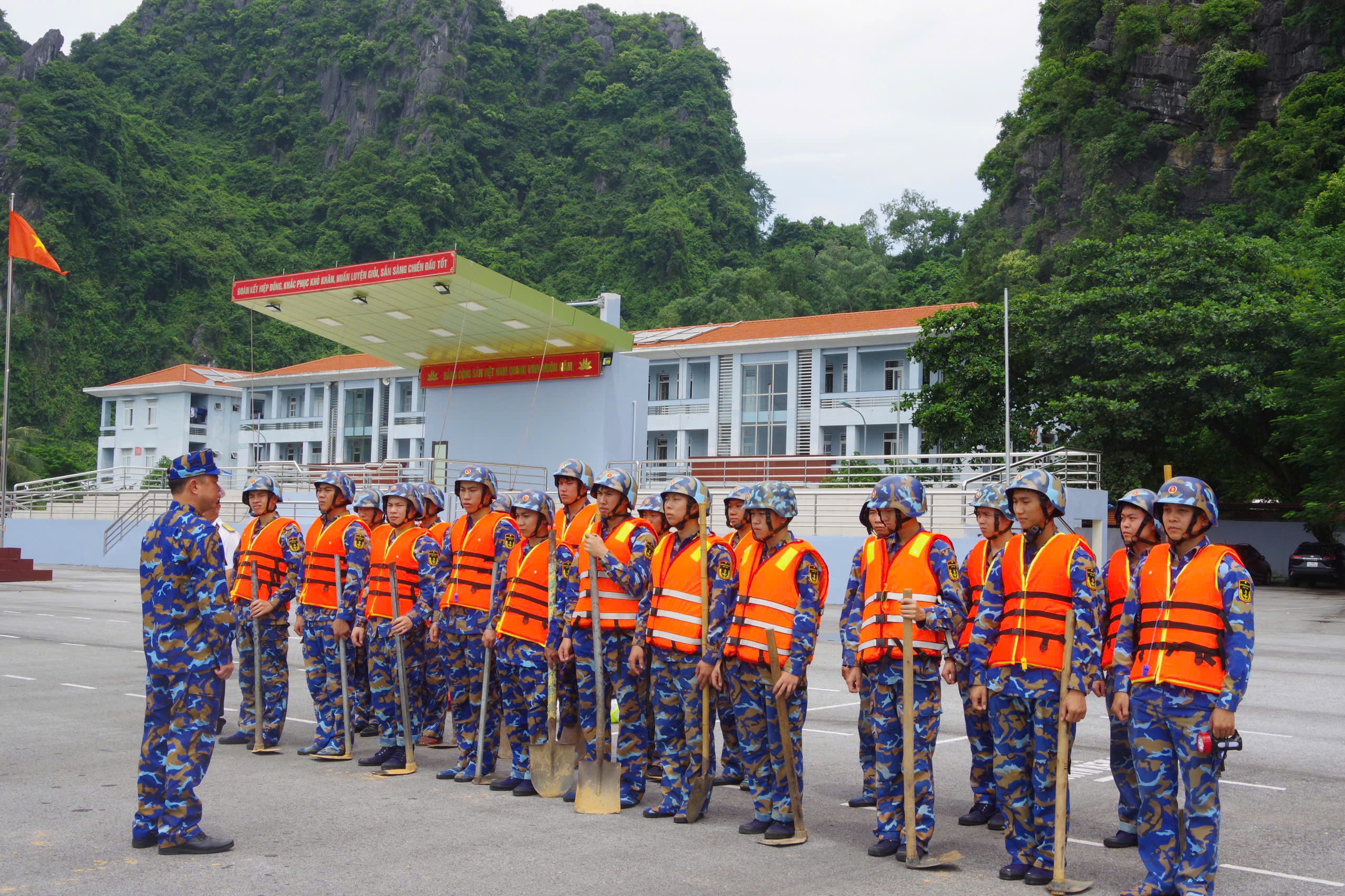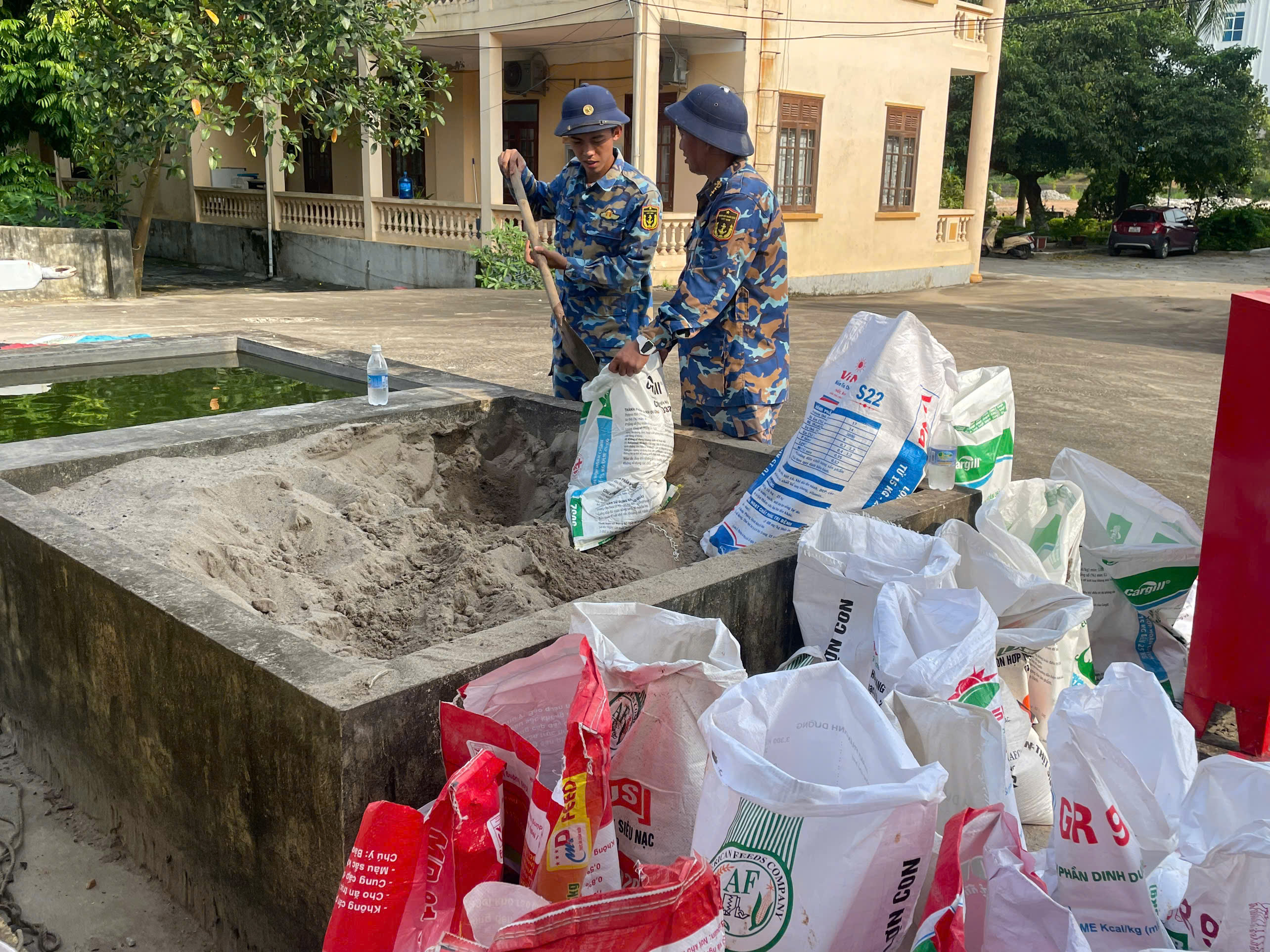 Đoàn 22 Hạ Long, chuẩn bị hàng trăm bao cát gia cố doanh trại