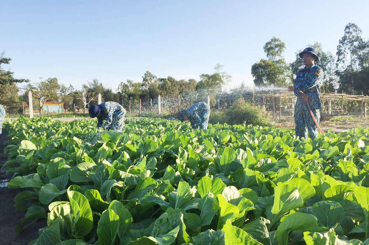 Để chuẩn bị nguồn thực phẩm an toàn, chất lượng phục vụ bộ đội trong dịp Tết Nguyên đán Tân Sửu 2021 và tiếp nhận chiến sĩ mới, Cục Hậu cần Hải quân đã chỉ đạo ngành quân nhu các đơn vị chủ động TGSX. Trung tá Cao Đức Thọ, Trưởng ban Quân nhu Vùng 1 cho biết: Hiện nay, chúng tôi đã bắt đầu trồng bắp cải, su hào, súp lơ, bầu, su su và một số rau vụ Đông cho năng suất cao. Để chống rét cho cây trồng, đơn vị phải phủ rơm rạ giữ ấm gốc rau, đồng thời hạn chế bón phân đạm, tăng cường bón các loại phân xanh, phân chuồng hoai mục, phân hữu cơ, phân vi sinh.